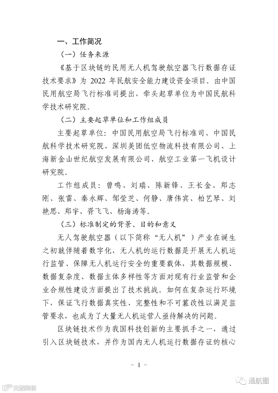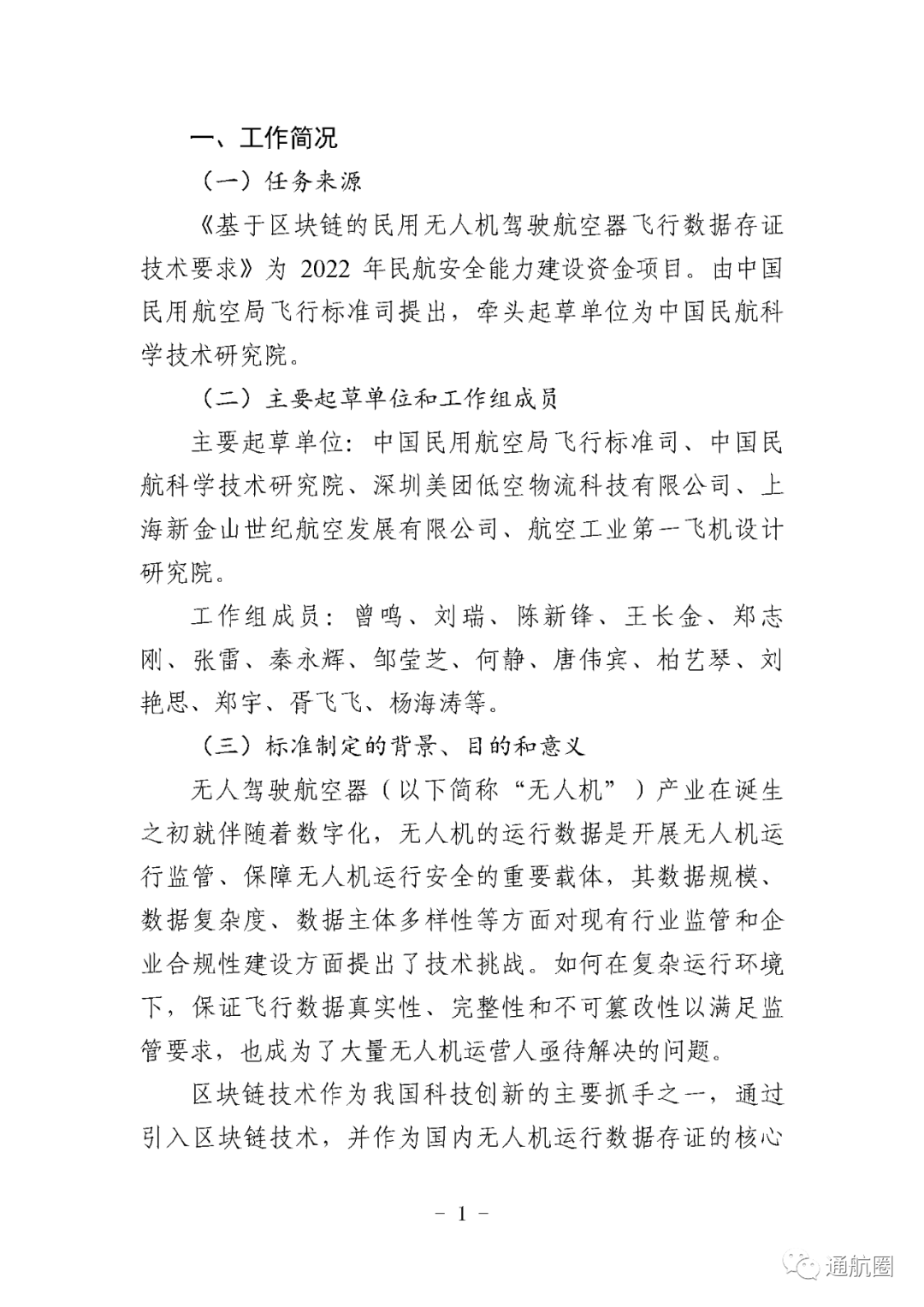 二、《基于区块链的民用无人驾驶航空器飞行数据存证技术要求》(征求意见稿)编制说明