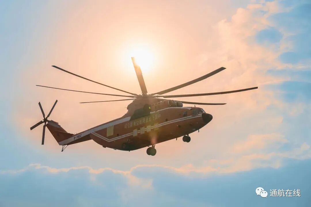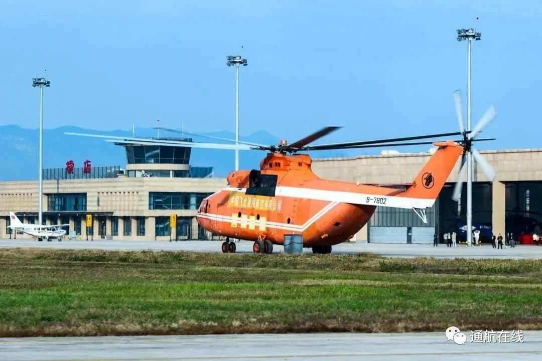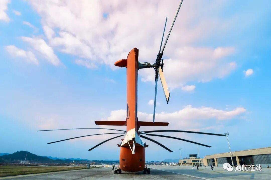 11月26日下午,随着一阵螺旋桨的轰鸣声,一架超级巨无霸直升机米-26在横店机场着陆。