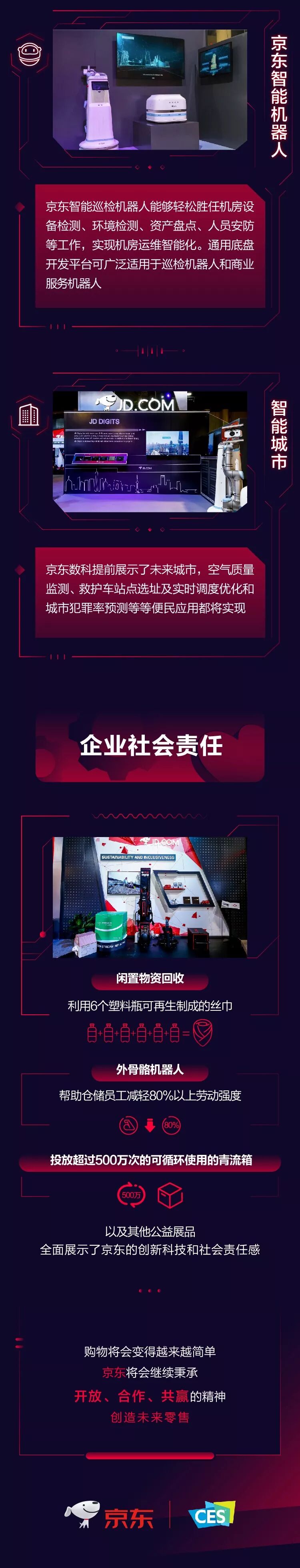 以前想象不到只带个手机就可以出门购物,现在的黑科技已经渗透到生活的方方面面,CES2019国际消费电子产品展会上,京东展位上的智能物流、智能生活、无界零售、京东数科和企业社会责任五个板块,全方位带你体验未来零售的新姿势。