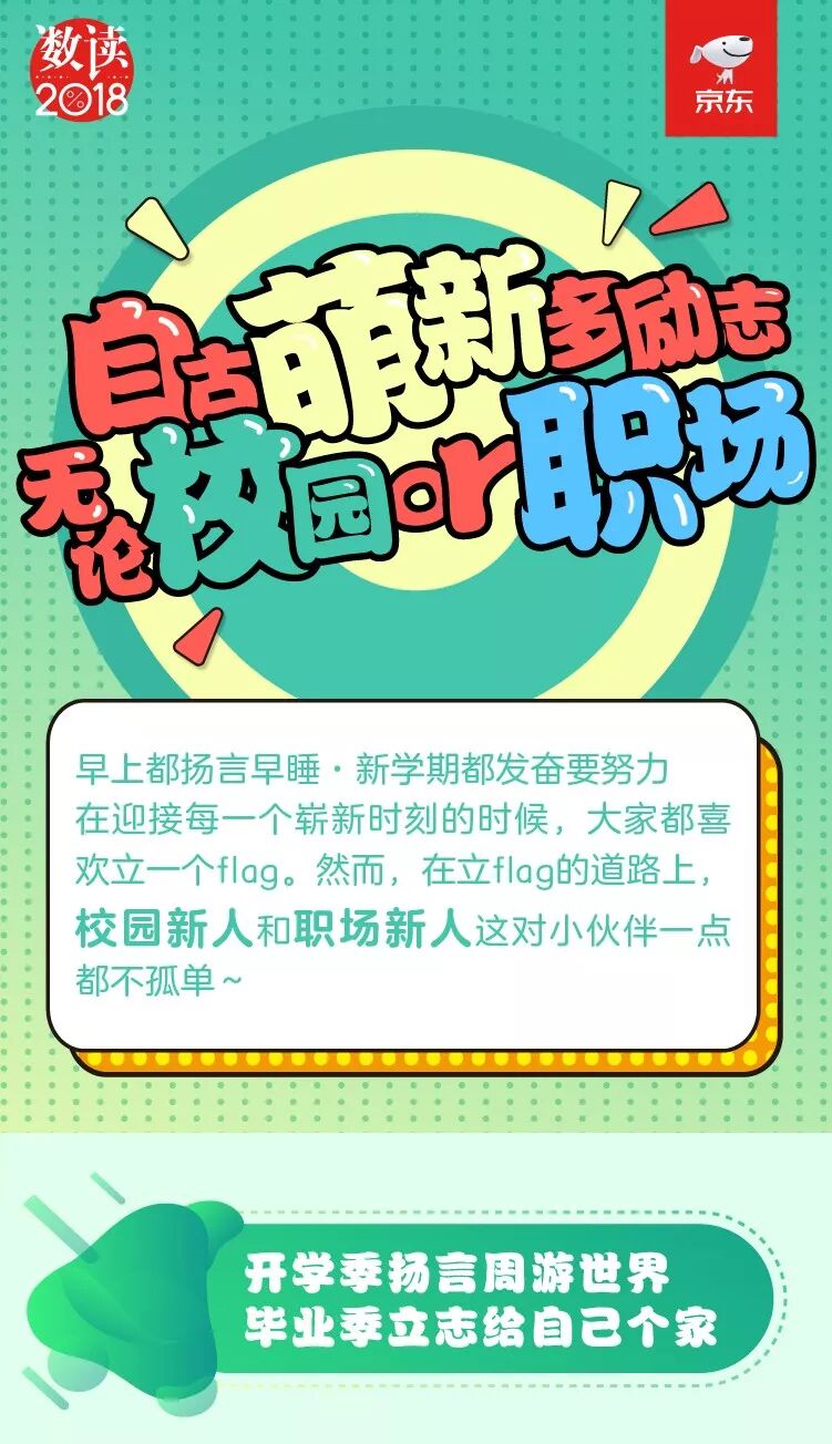 我们不是flag的搬运工,只是flag的生产者。有的说要管住嘴迈开腿,有的说今晚一定要早睡。虽然不知道这些flag最后都怎么样了,但是京东大数据发现,刚升学的校园新人和刚毕业的职场新人这对CP简直是个flag狂魔。