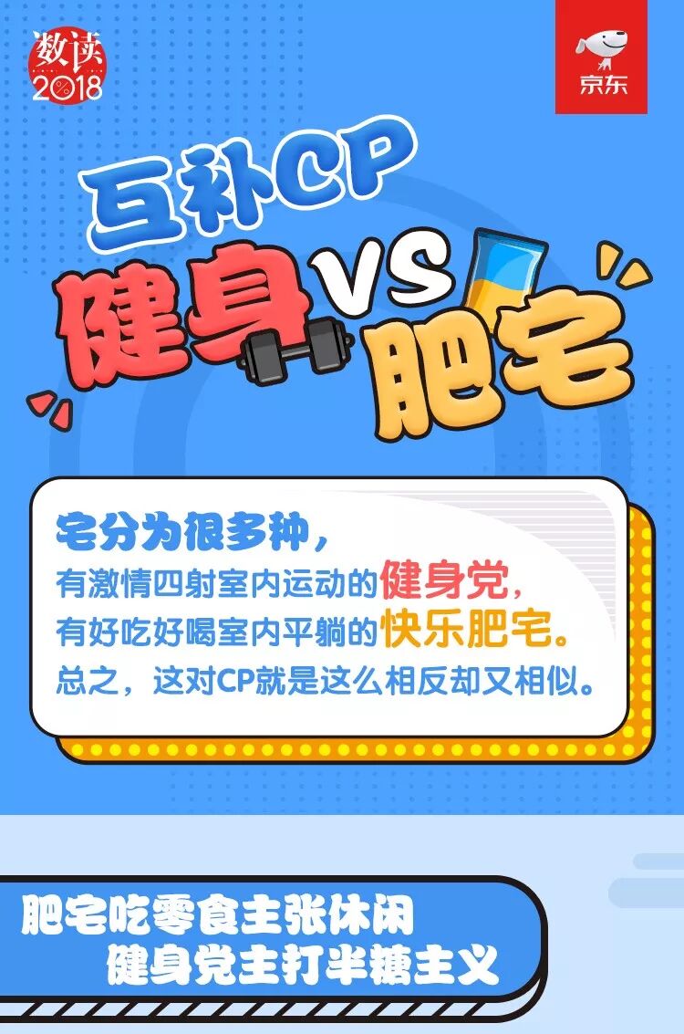 同样是吃,肥宅喜欢餐前餐后再吃几口,健身族却能禁欲系进食。京东大数据显示,脏脏包、薯条三兄弟、维他柠檬茶是热销的网红零食;健身党大多喜欢半糖/无糖型食品,比如无糖茶饮料,苏打水,无糖植物饮料热销产品。