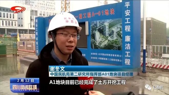 中国民航局第二研究所指挥部A01地块项目经理 谢冬文:A1地块目前已经完成了土方开挖工程,主要功能是用于科学研究和多功能的学术交流。A2地块预计在今年建成投入使用。整个园区年底部分投入使用,到2024年将基本建成。