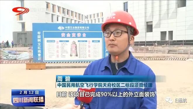 中国民用航空飞行学院天府校区二标段项目经理 周碧:二标段项目由23个单体建筑构成,包括培训中心、教学中心。目前该项目已完成90%以上的外立面装饰、内部装修和安装工程,预计于2023年3月基本完工。