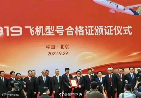 国产大飞机C919终于等到了这一天——9月29日,中国自行研制的、具有自主知识产权的中短程商用干线双发喷气式大型客机C919于今天9月29日获得民航管理局颁发的合格证证书。