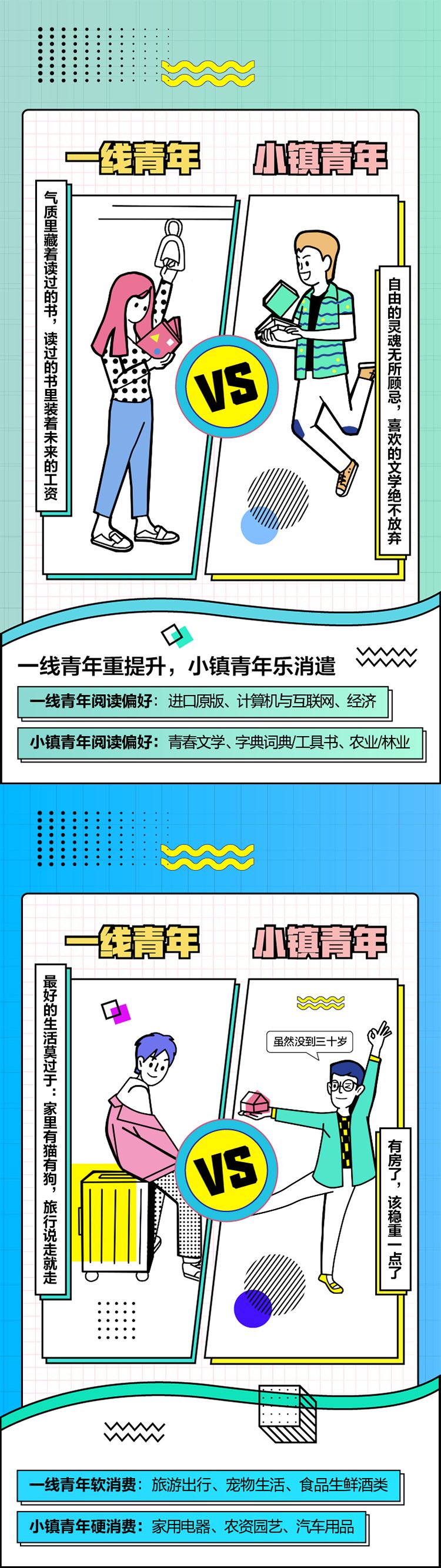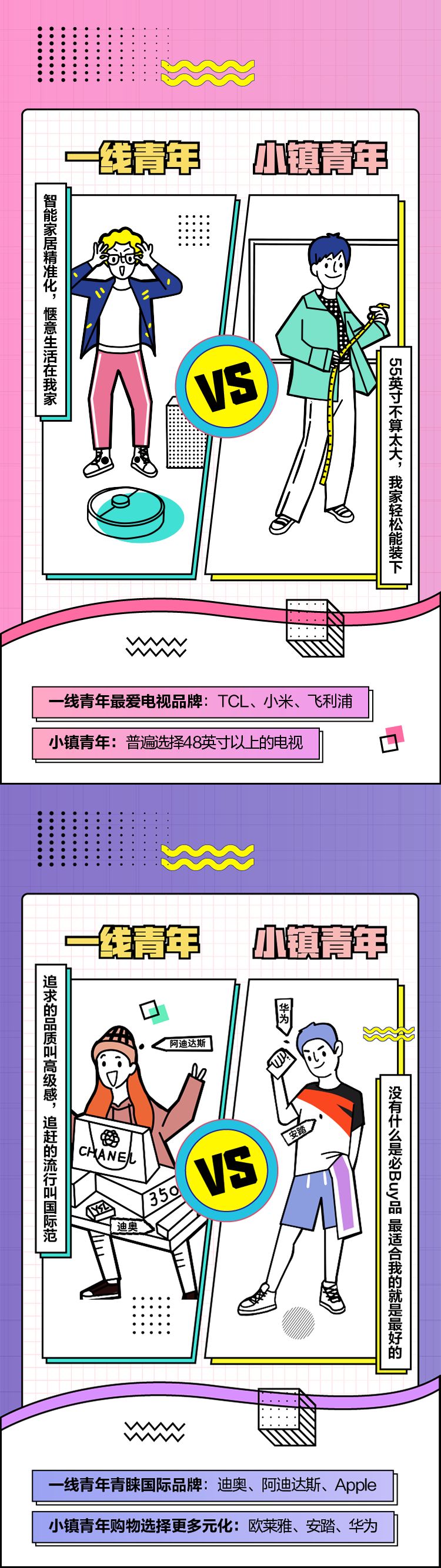 看下列海报,了解更多关于一线青年和小镇青年的消费数据……