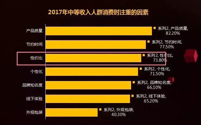第二,理性化消费,“买精买好”比“买多买贵”更重要。研究表明,我国中等收入群体消费时除关注产品质量及时间外,有73.8%的消费者在消费时更关注商品的性价比。随着消费需求的变迁,“只买贵的,不买对的”等消费观念已被“买精买好”的观念所取代,追求用合适的价格高效地选到有用的好东西是当前消费者的主要消费观。