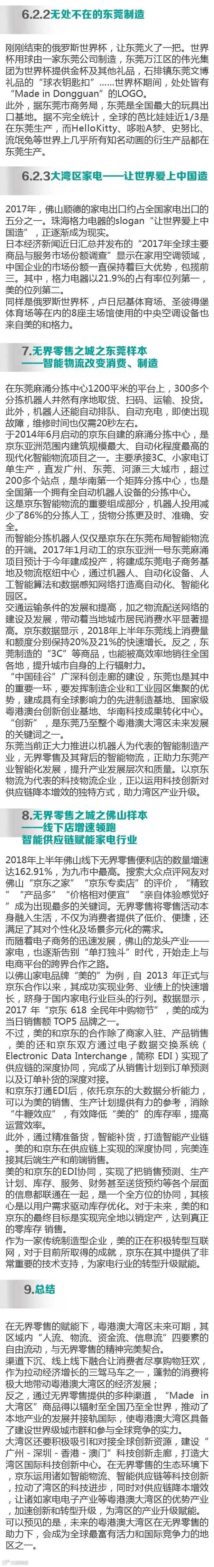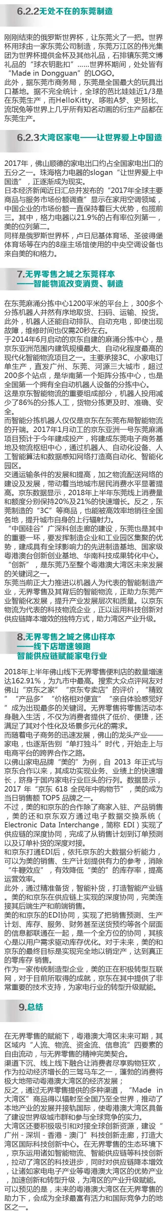 未来随着香港开通港珠澳大桥、广深港高铁香港段等重大跨境基建,将进一步促进大湾区人流、物流、资金流、信息流的交互和流动,增加人、货的通关便利,未来将打造“环珠三角一小时经济带”。 粤港澳大湾区要积极吸引和对接全球创新资源,无界零售则引领着湾区科技的创新发展。以京东为代表的企业,运用科技的创新对供应链降本增效,为湾区的产业升级赋能。