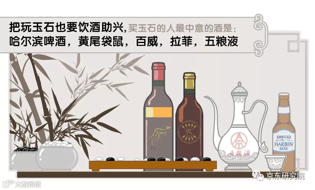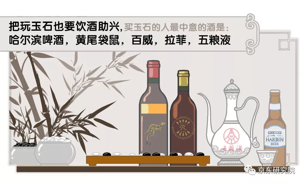 长期过着闲云野鹤的日子偶尔也会添加一点小资情调和干杯的激情,在京东上购买玉石的消费者也经常买点哈啤和红酒。一边干杯一边盘着核桃聊人生的画面立刻浮现。