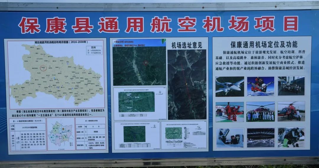 据了解,根据《湖北省通用航空中长期发展规划》和《襄阳市航空产业发展规划》,保康县被确定为湖北省42个A1类和襄阳“一主五通多点”5个A1类通用机场网络建设体系之一。保康通用机场建设项目位于城关镇白果园村,占地面积1500亩,计划总投资约5亿元。目前,保康通用机场项目已经完成通用机场选址报告和飞行程序报告的修订工作,按照国家通航机场建设报批工作程序,正在筹备保康县通航机场建设项目选址评审工作和项目可研、初设编制的前期准备工作。