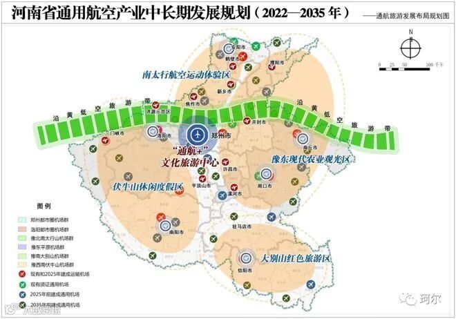 在提升通用航空服务水平方面,除了积极发展短途运输、重点发展工农林作业,还提到了将大力发展低空旅游。与“老家河南”、黄河文化、大别山文化等文化名片相融合,形成“一心一带四区”的通航旅游布局。