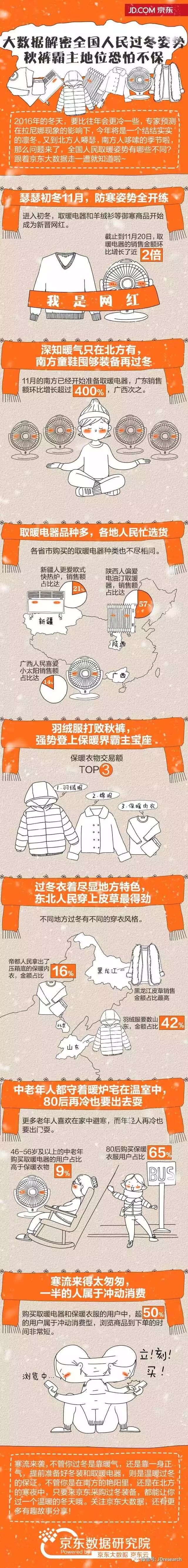 冬天到底是北方冷还是南方冷?往年每到寒风凛冽之季,就是秋裤君晋升为全民男神之时,今年却半路杀出个程咬金,分分钟把它从宝座上强势拉下。京东大数据这就解密全国人民的过冬姿势,戳图给你答案!