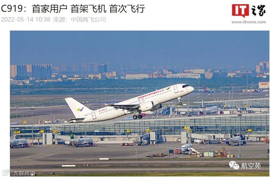 IT 之家了解到,C919 飞机是我国首款完全按照国际先进适航标准研制的单通道大型干线客机,具有我国完全的自主知识产权。最大航程超过 5500 公里,性能与国际新一代的主流单通道客机相当。于 2017 年 5 月 5 日成功首飞。