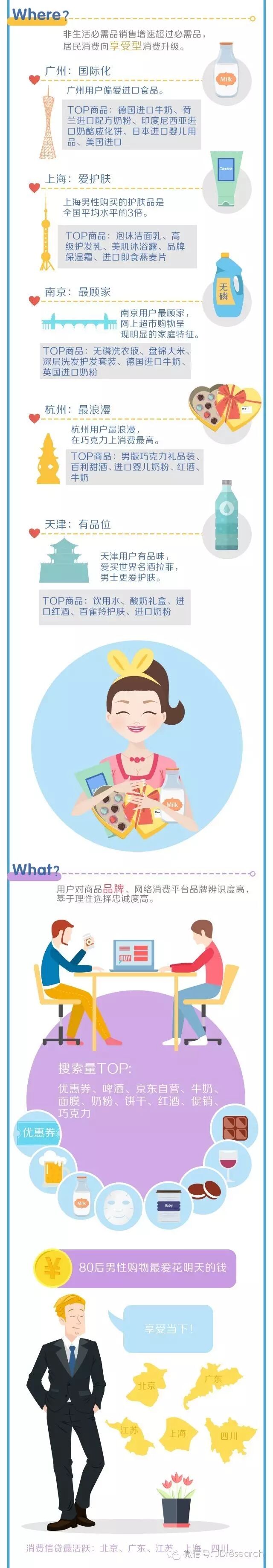 导读:谁在京东超市买买买?80后和90后成为网络超市购的主要人群,80后显示出成熟的家庭购物特征,90后高速成长,酒类、面部护理、食品饮料品类购买力突出。