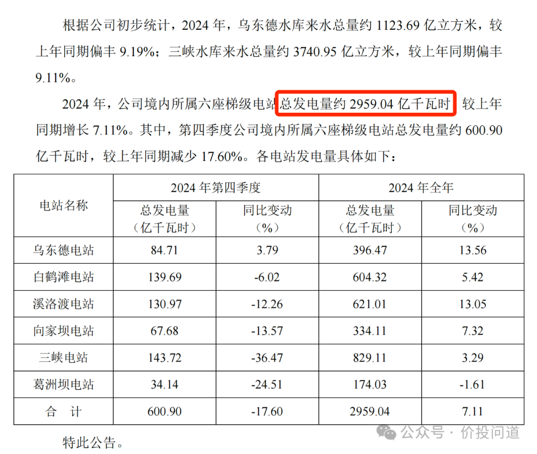 2024年总发电量 2959亿千瓦时。可以六库联调,最大化发电效益。并且收购秘鲁等地的海外资产,拓展增量。