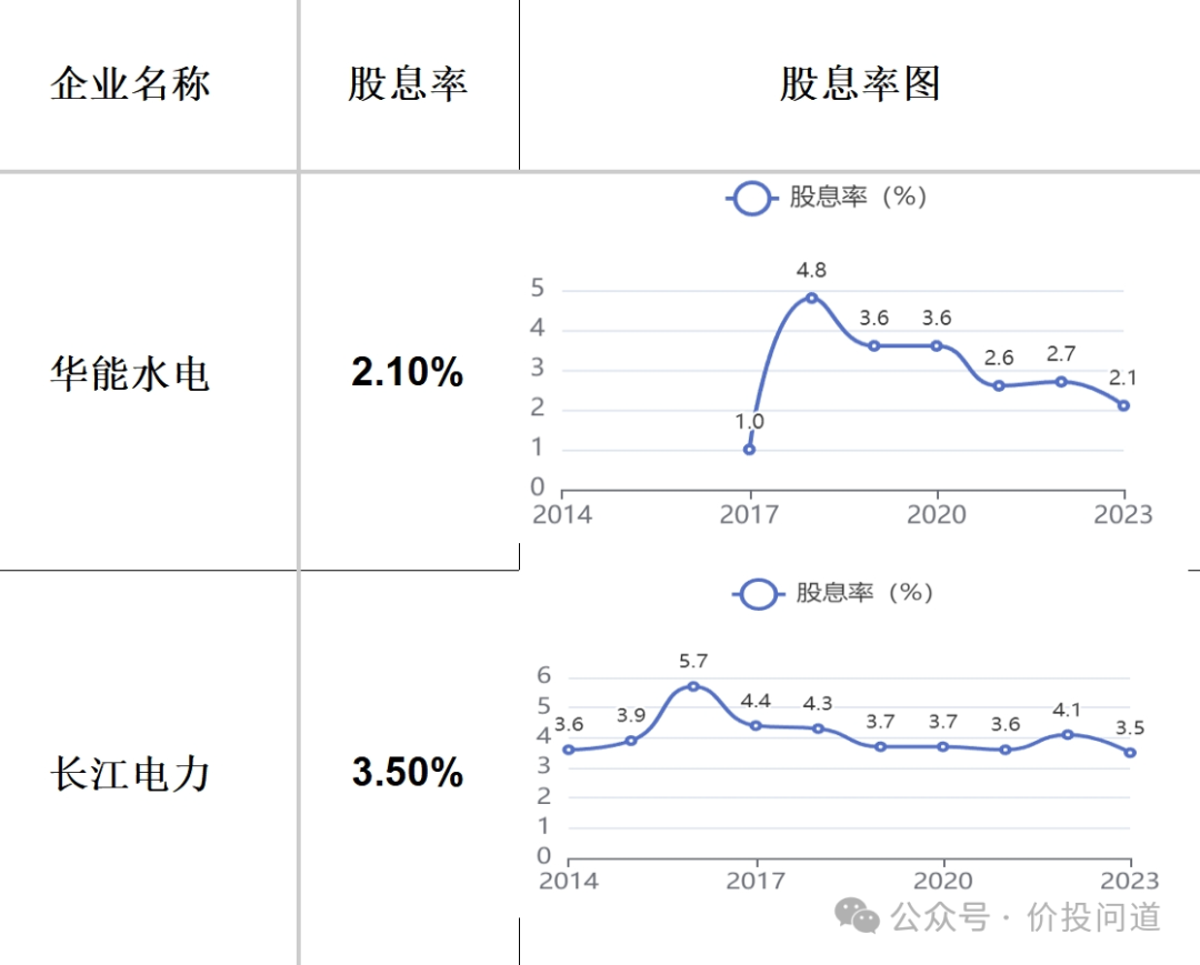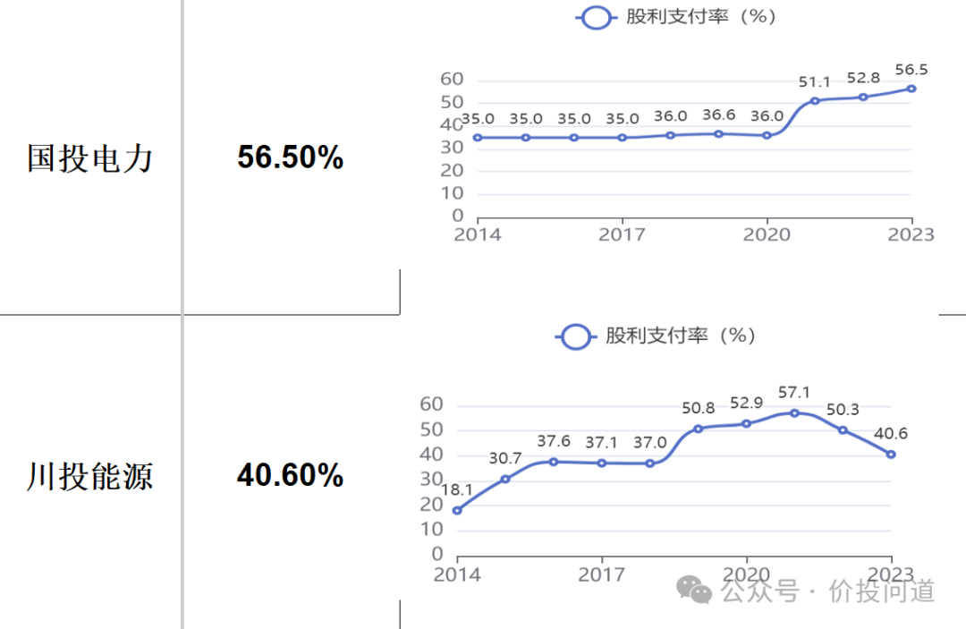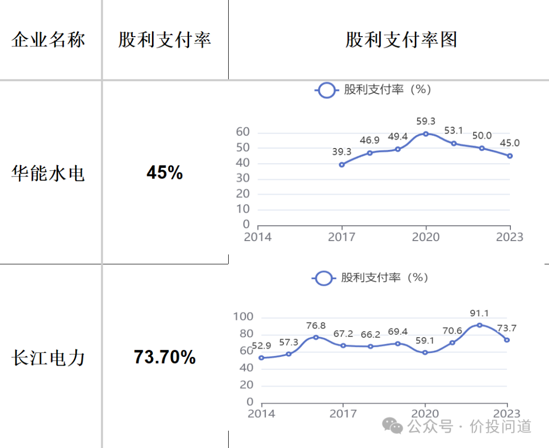 股利支付率华能水电基本上在40%到50%之间,长江电力在60%到70%居多,国投电力这两年在50%左右,川投能源在30%到50%之间。分红都还是比较慷慨的,长江电力分的最多。