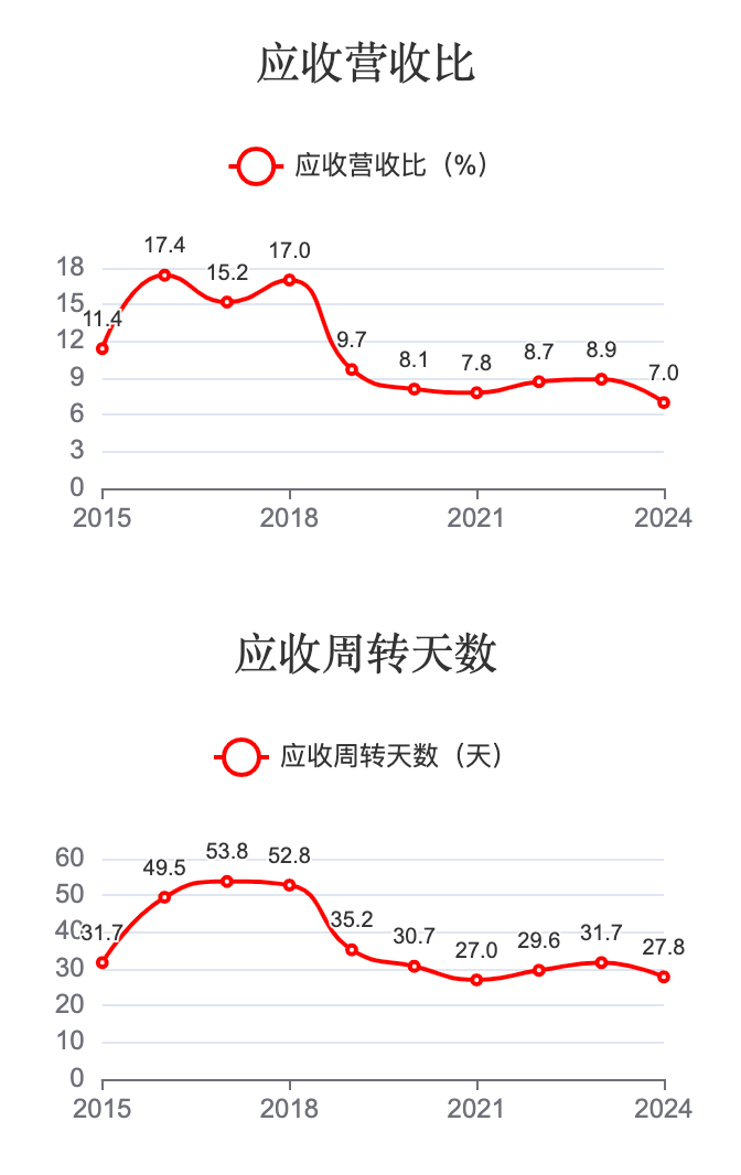 2024年应收占营收7%,周转天数28天,应收风险比较低。