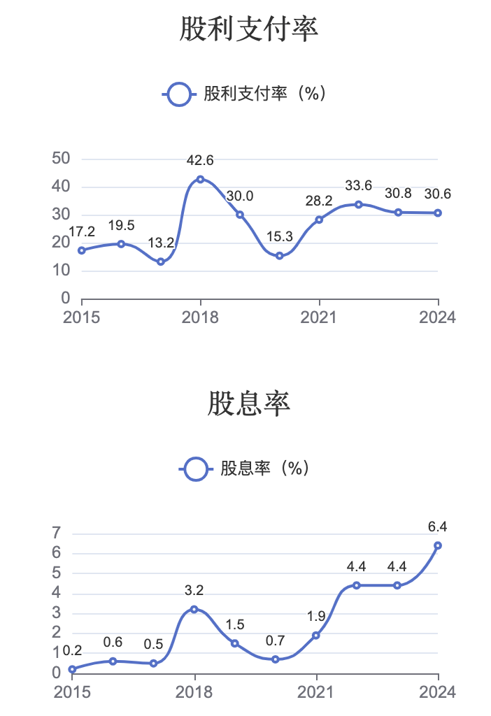 股利支付率30%左右,合理范围,还有提升空间。股息率6.4 %,还是比较理想的。