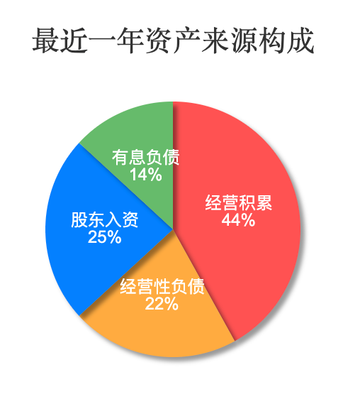 经营积累占比最大44%,股东入资其次,占比25%,不算是最理想的资产结构,但也不算差。