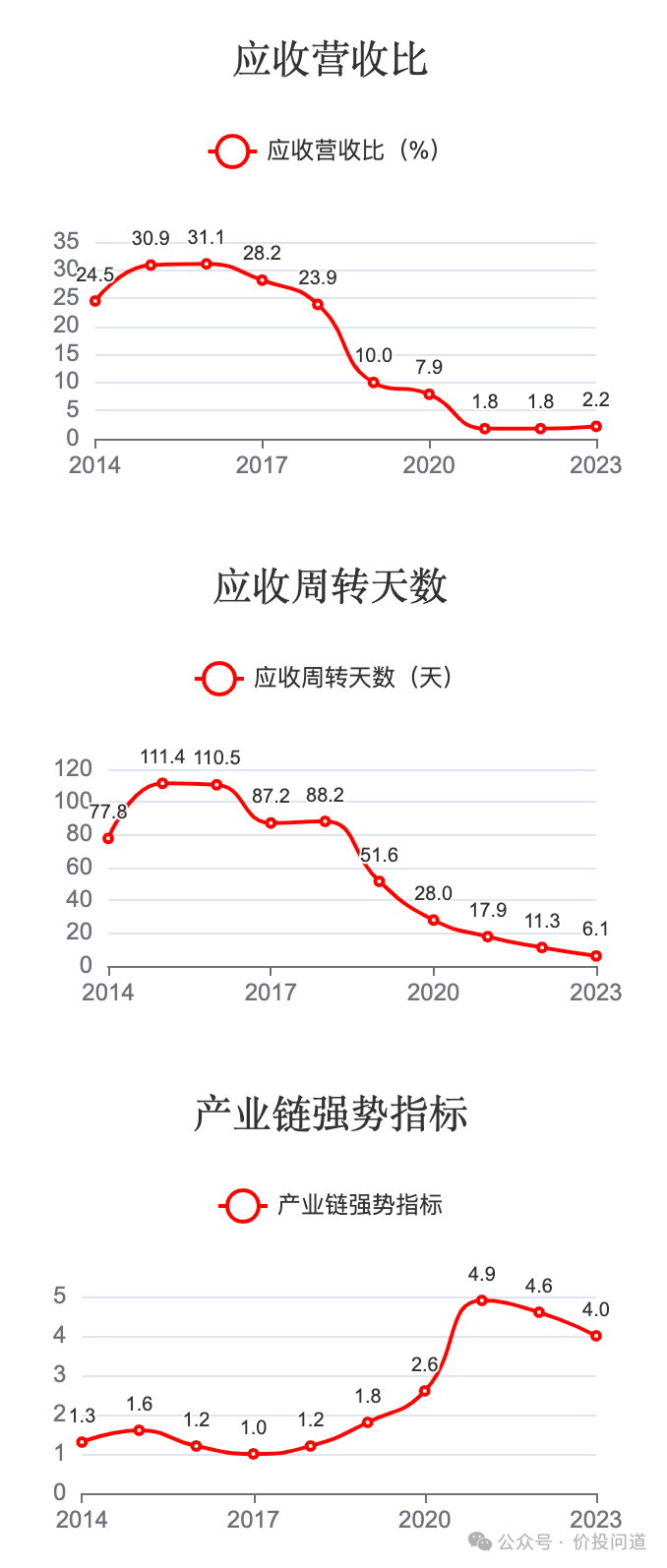 应收占营收比和应收周转天数都在持续下降,2023年只占营收的2.2 %,周转天数是6.1天。都非常低,应收风险也低。