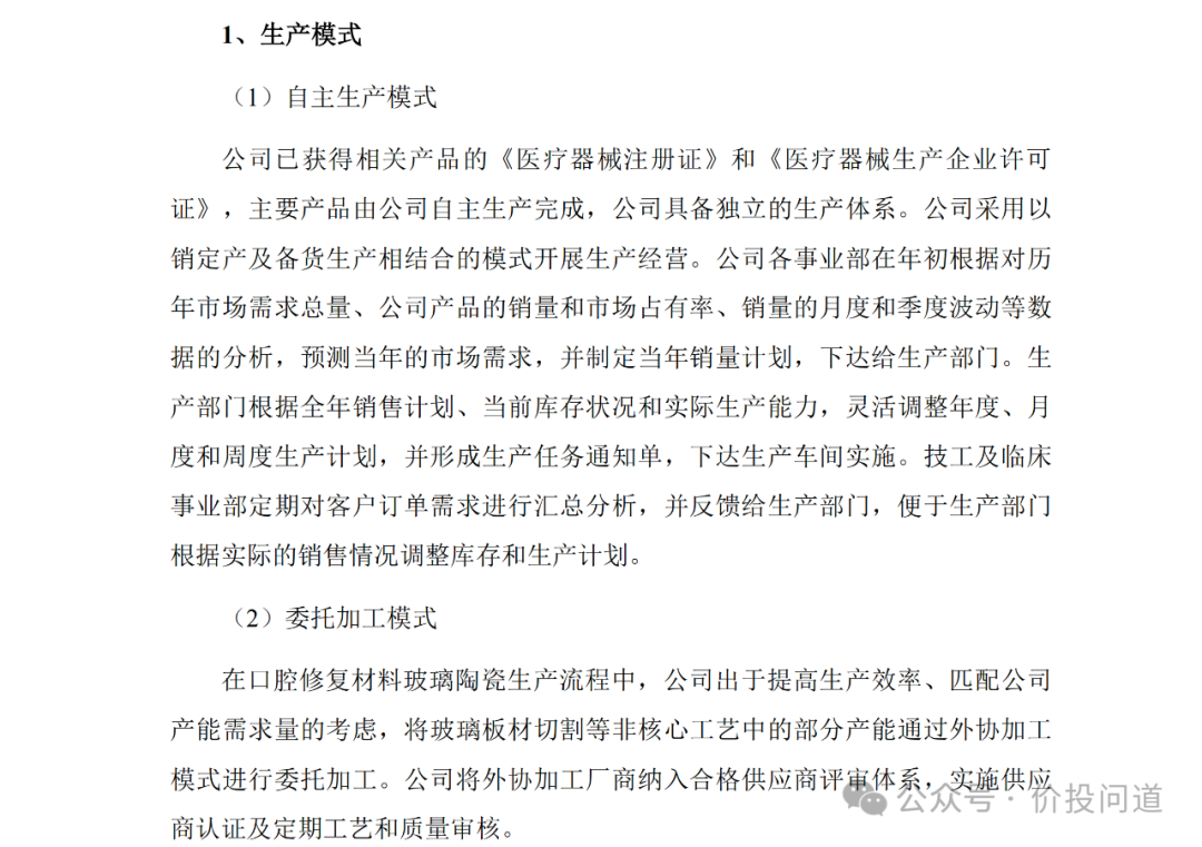 生产方式:核心环节以销定产、自产,非核心环节委外加工。这种模式是高效且明智的。