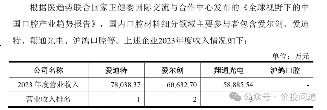 爱迪特口腔修复材料,在国内同行业有领先地位,但领先优势还没拉开差距,在行业增速较快的情况下,目前处于满产满销状态。