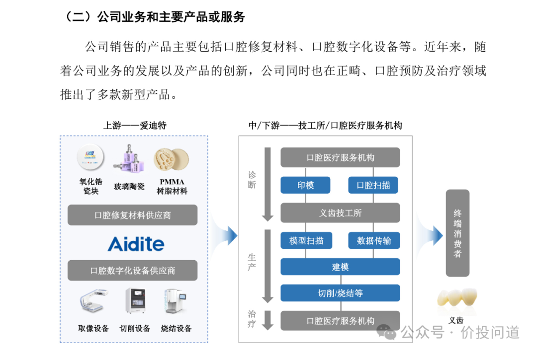 爱迪特所处产业链环节,也是整个口腔医学产业中,规模大、增速高、资产轻、有一定行业壁垒、且复购率高的环节。