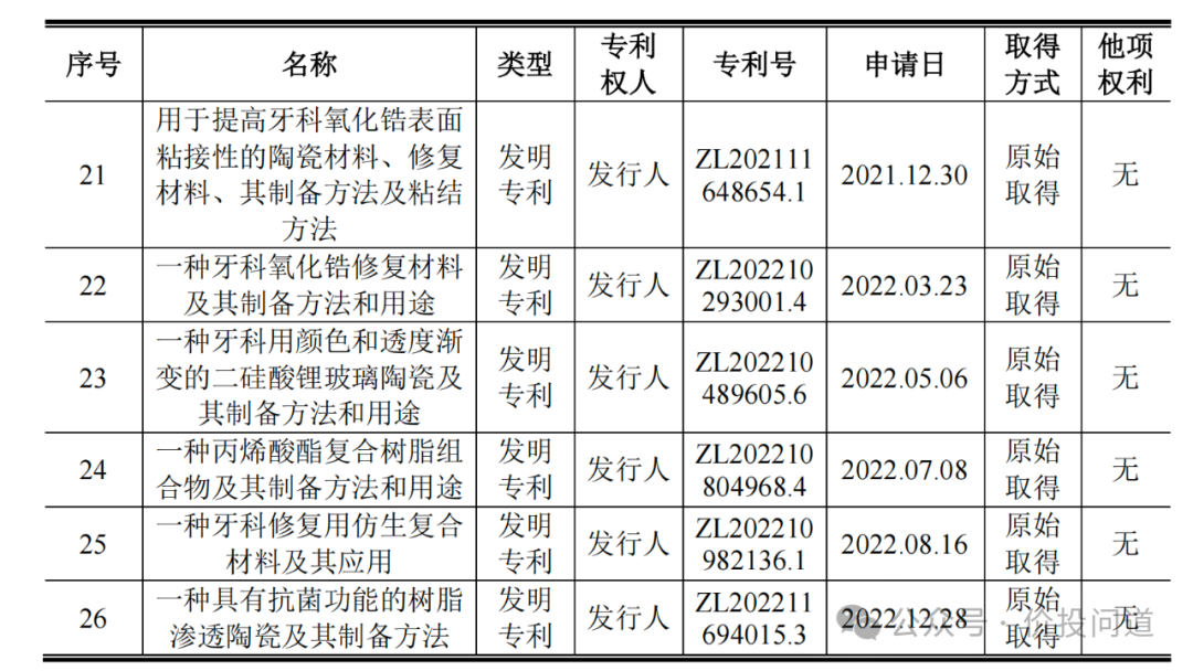 (1)技术及人才壁垒:齿科材料是多学科交叉的行业,产品销售的同时需要为客户提供产品加工、设计、应用等全方面的培训,这需要公司拥有口腔医学、材料学、图像处理、自动化控制、精密加工等多种学科的人才和技术,具有较高的技术及人才壁垒。