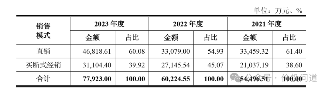 直销占比超过60%,证明公司拥有较为自主可控的销售网络。