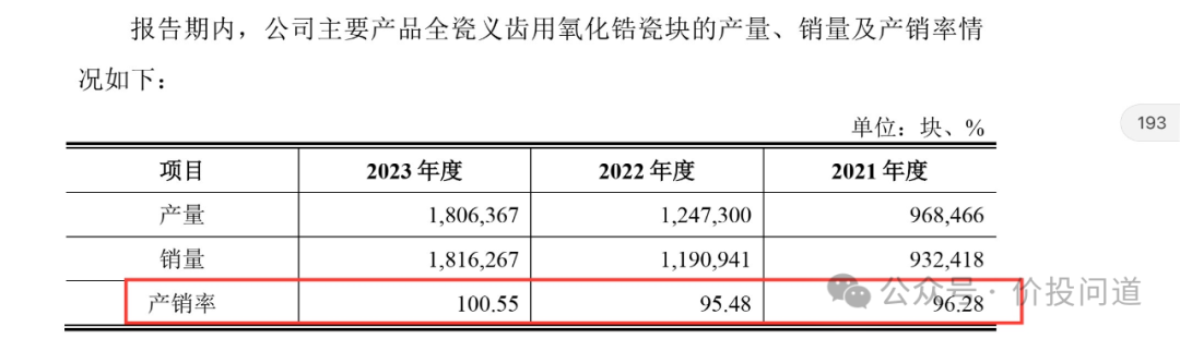 产销率基本满产满销,近几年达到了95%以上,2023年达到了100%,证明产品很热销。