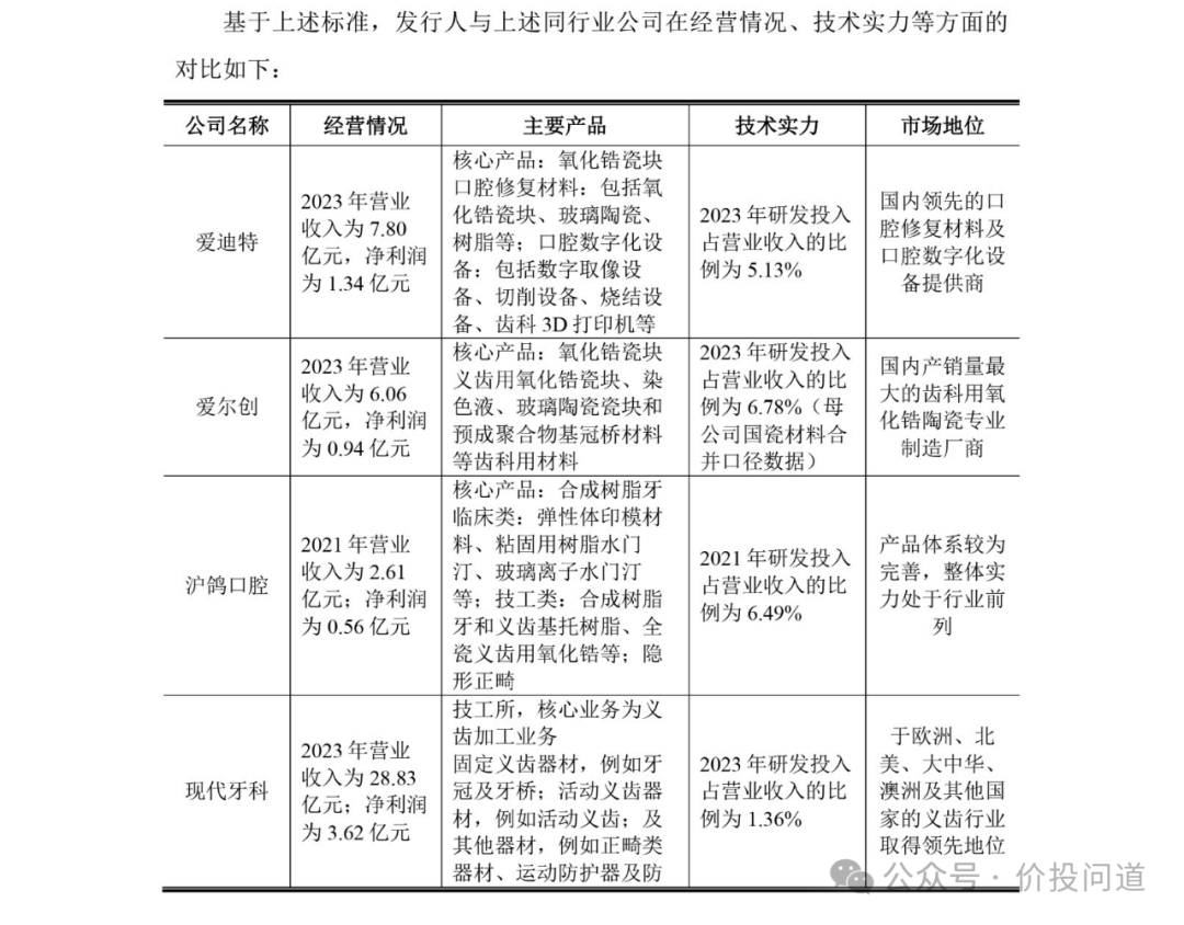 从营收到业务范围上看,爱尔创是比较明显的直接竞争对手,现代牙科则是潜在对手。因为这两家都是上市公司,且现代牙科收入规模还比爱迪特大几倍。所以我们看看这两家企业。