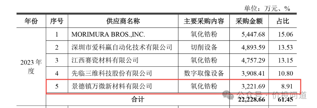核心材料供应商分成了三个,且占比都在20%以下,而且爱迪特还战略投资了景德镇万微新材料公司15%股权,做供应链安全的布局。单一供应商最好不要超过30%。