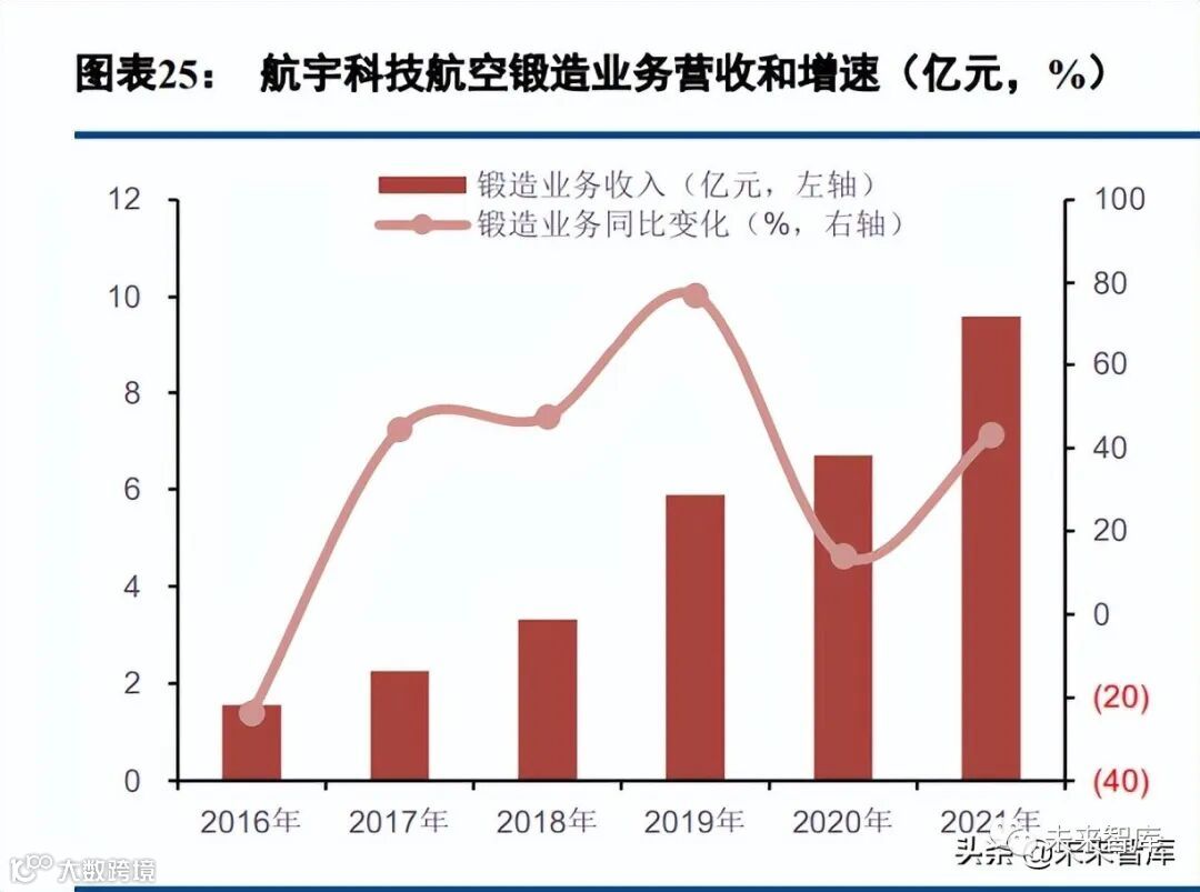 公司前身航宇有限成立于 2006 年,是国内航空发动机环形锻件的主研制单位之一,承担多个重大科研项目, 是工信部第一批专精特新“小巨人”企业。公司在国内航空市场,与中国航发下属主机厂和科研院所建立了长 期稳定的合作关系,参与我国多个预研和在研型号航空发动机环形锻件的同步研制,包括新一代军用航空发动 机、长江系列国产商用航空发动机。公司也是环锻件国际转包业务的前行者,已与多家航空 OEM 签订长协。公司与我国重点航发主机厂配套关系密切,且几乎参研了全部重点航发及燃机型号,尤其在大直径难变形 材料环锻件加工具有技术专长,实控人及经理层具有深厚的航空环锻件工程经验。公司聚焦核心主业,扩充产 能,逐渐扩展航发领域外的高端环锻件业务。公司营收与毛利率稳步提升,航空领域占主导。17-19 年营收同比增速维持在 44%以上水平,20 年由于海 外疫情影响国际转包业务等原因,营收增速回落至 14%,21 年营收增速提升至 43%,体现国内航发产业高景气 带来营收增长。随着公司着力布局的主力科研型号航发定型量产速度加快,疫情对国际航空制造业影响逐渐消 散,公司锻造业务收入有望进一步提升。