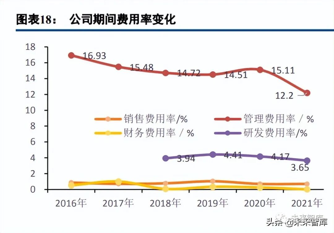 从公司毛/净利率水平变动观察,公司销售毛利率稳定,净利率则在 19 年后逐渐提升,主要是期间费用率 改善所致。从各期期间费用率观察,21 年公司管理费用率下降最大,达 2.91pcts,其中职工薪酬降低显著,反 应公司组织上推行“强身健体”及业务上坚持“小核心、大协作”,加大非核心业务外包、外协的成果;公司财 务费用率及研发费用率小幅降低(-0.25 及-0.52pct),销售费用率保持稳定,都反应出公司经营稳健的特点。
