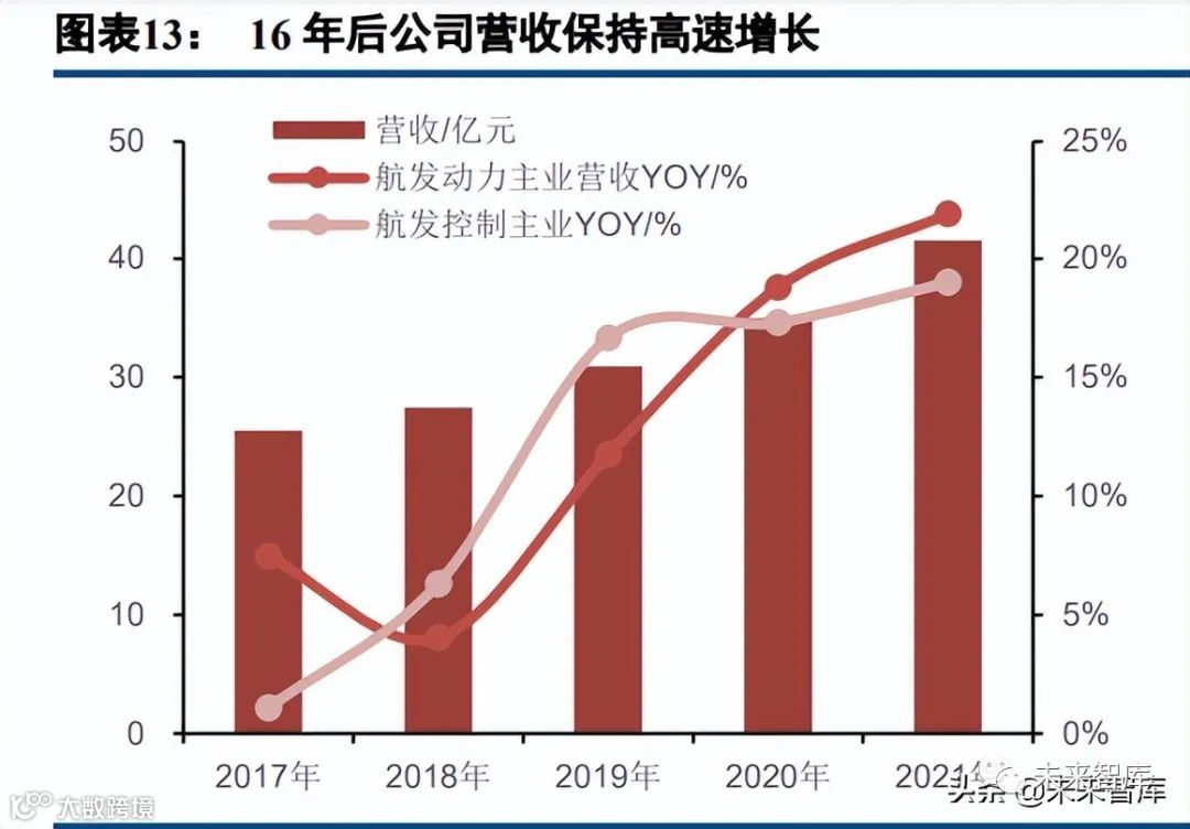 公司 21 年实现营收 41.57 亿元,同比增长 18.25%,16 年后营收快速增长,体现航发集团成立及两机专项 落地背景下,航空装备整体换代升级及规模上量带来的行业高度景气。业务组成中,航发控制系统及部件主业 占比自 2018 年后持续升高,21 年保持稳定在 85%左右,航发控制系统主业放量节奏与下游航发主机厂(以航 发动力为例)同步,反应公司作为核心配套商与航发行业整体的高度联动。国际转包业务在 20 年受贸易摩擦及 新冠疫情影响大幅下降后,21 年开始逐渐恢复,同比增 10.19%,显示出公司产品在国际航空转包市场中的比较 优势;值得特别关注,公司非航业务营收在 20 年大增 70%的基础上,继续大幅增长 22.73%,公司以动力控制 系统核心技术为依托,重点向兵器、汽车等动力燃油与控制系统及衍生产品研制、生产、试验、销售、维修保 障拓展。