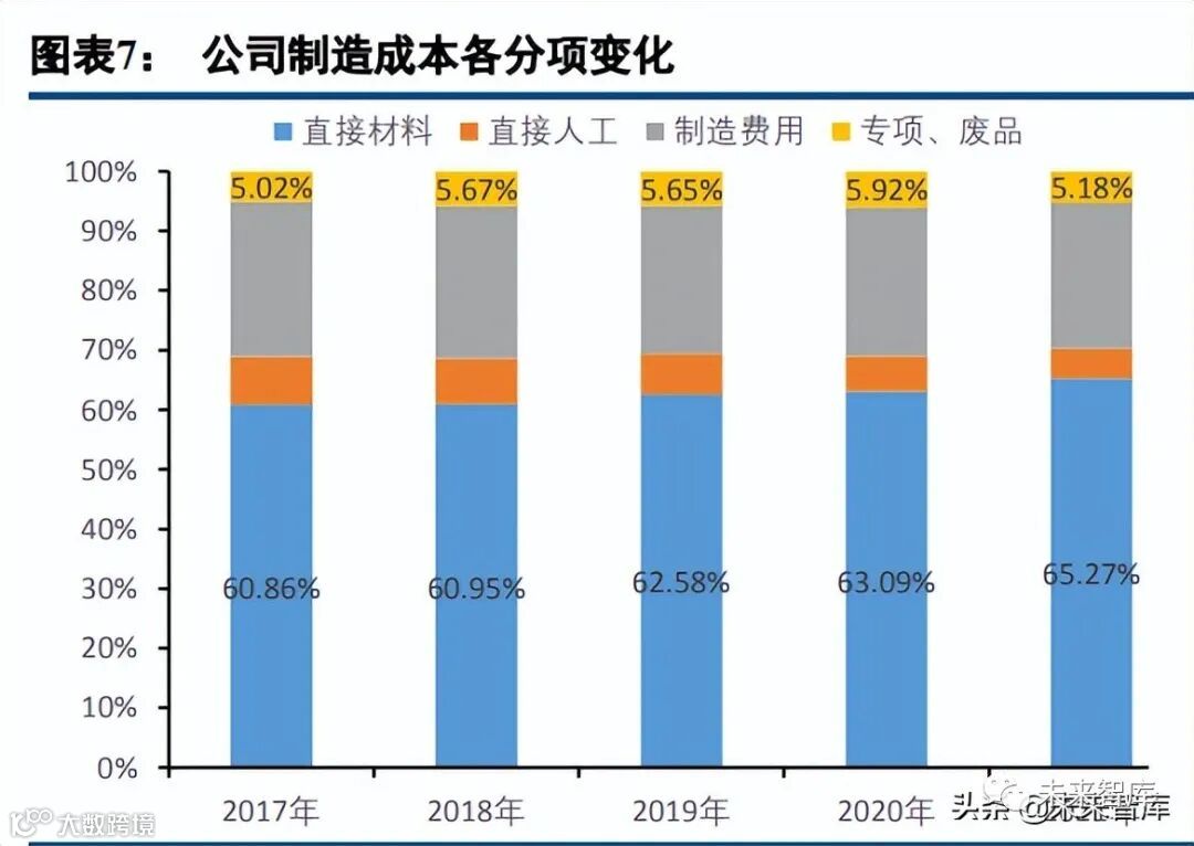 从公司的制造成本组成观察,公司制造成本中制造费用占比较高,显示出明显的重资产特点。随着公司业 务规模扩大,制造成本中制造费用占比持续降低,重资产型企业固定费用规模摊薄效应更为显著,业务规模扩 张有利于毛利率水平的持续提高。