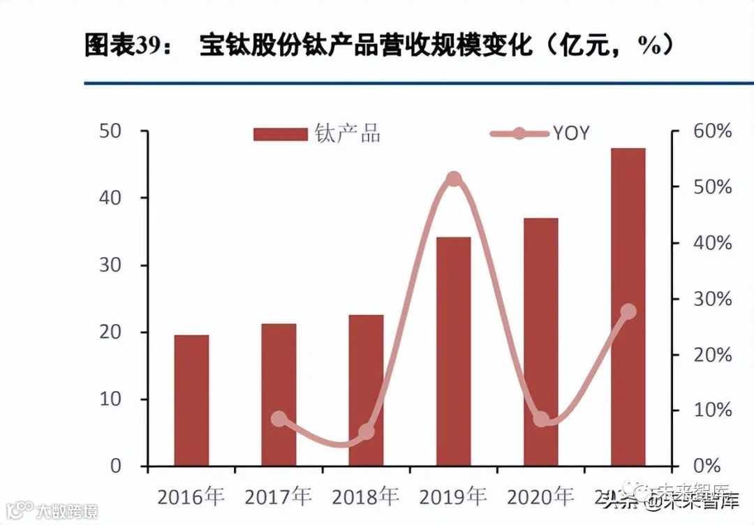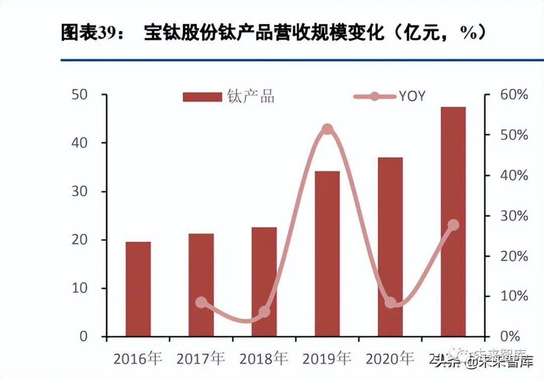 宝钛公司目前已建立起“海绵钛、熔铸、锻造、板材、带材、无缝管、焊管、棒丝材、精密铸造、原料处 理”十大生产系统,形成 3 万吨钛铸锭和 2 万吨钛加工材生产能力。公司主体装备由美、日、德、奥等十五个 国家引进,主要有 2400KW 电子束冷床炉、15t/10t 真空自耗电弧炉、万吨自由锻压机、2500t 快锻机、高速棒 丝生产线、钛带生产线(MB22-TI 型二十辊冷轧机)、3.3 米宽厚板生产线等,这也使我国成为继美、日、俄后拥有完整钛工业产业链的国家,产品广泛应用于航空、航天、舰船等高精尖领域和氯碱化工、电力、冶金、医 药及海洋工程等国民经济重要领域。公司作为国际钛产品龙头,钛材全条线、全流程布局,具备规模效应及成本控制优势。航空航天高端钛材 领域,公司扩充其优质海绵钛供应能力后,又在建设高端钛材加工产能,产品结构升级有望持续增厚其盈利水 平。公司作为国际主要钛材供应商,受益于局部冲突带来的产业转移。