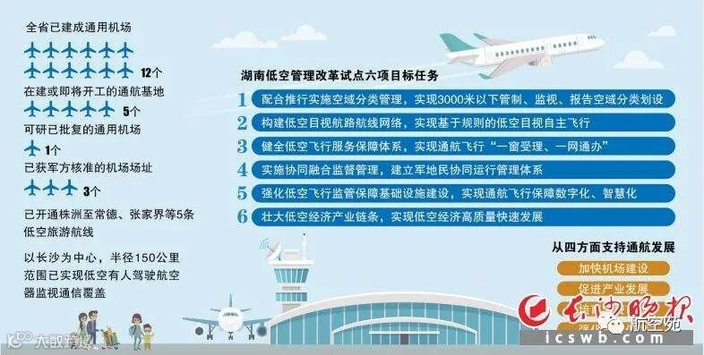 2020年9月,湖南启动全域低空空域管理改革试点工作以来,通过多方努力,在法规制度保障体系构建、低空空域划设方案编制、军地民协同运行管理机制创建、低空飞行服务保障体系建设、通用机场建设等方面均取得了突破性的进展,多项工作创造了全国第一的好成绩,越来越多的通航企业希望来湖南发展,湖南通航产业迎来了蓄势腾飞的黄金期。
