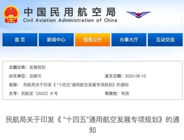 6月16日,近日,民航局印发《“十四五”通用航空发展专项规划》,围绕“五大重点领域”、“两大保障体系”确定重点任务。