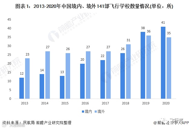 截至2020年12月31日,我国境内的141部飞行学校一共有41所,较2019年数量上增加了3所,其中26所具有整体课程培训资质。另外目前我国境外共有35所持有CCAR-141境外驾驶员学校认可证书的飞行学校(其中3所由于疫情正在开展复审工作),较2019年数量上减少了1所。其中美国17所、澳大利亚11所、加拿大3所、南非1所、欧洲地区3所。