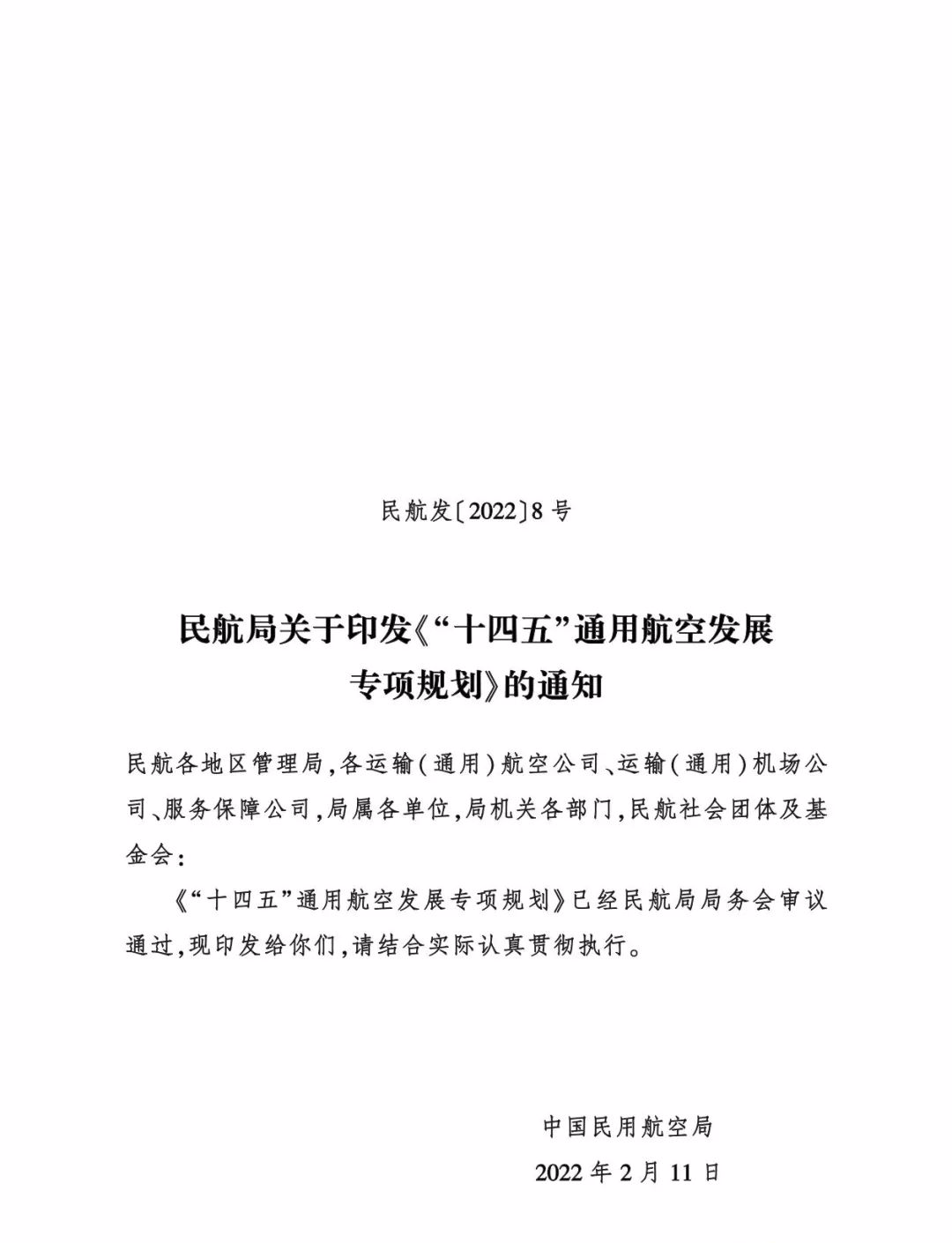 《 “十四五”通用航空发展专项规划》