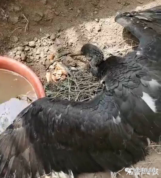 燕赵晚报 | 翅膀受伤的小黑鹳落难山村田地间获得救治