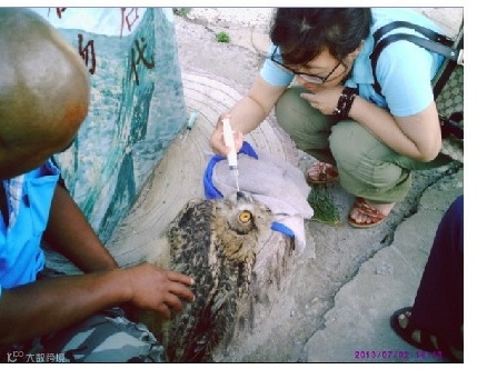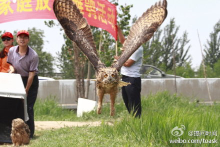 图8、2014年,沧州野生动物救护中心放飞警方罚没救助的雕鸮。