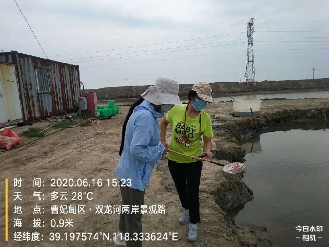 6月16日,天津护鸟志愿者宝光老师,和护鸟大咖王建民老师一同来到河北曹妃甸湿地调研,并查看了当地鸻鹬鸟类喜爱的食物——丰年虫的数量、大小等情况。