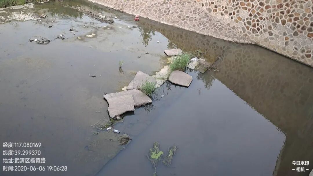 6月6日,志愿者来到武清区巡查,在陈嘴镇东肖庄村地段永定河堤岸上发现大量垃圾,包括:建筑垃圾8处,生活垃圾8处。东肖庄扬水站排出的水看上去已经被污染,水颜色已经变色,呈黑灰色,和污水一样,并且水周围仍旧有大量垃圾存在。