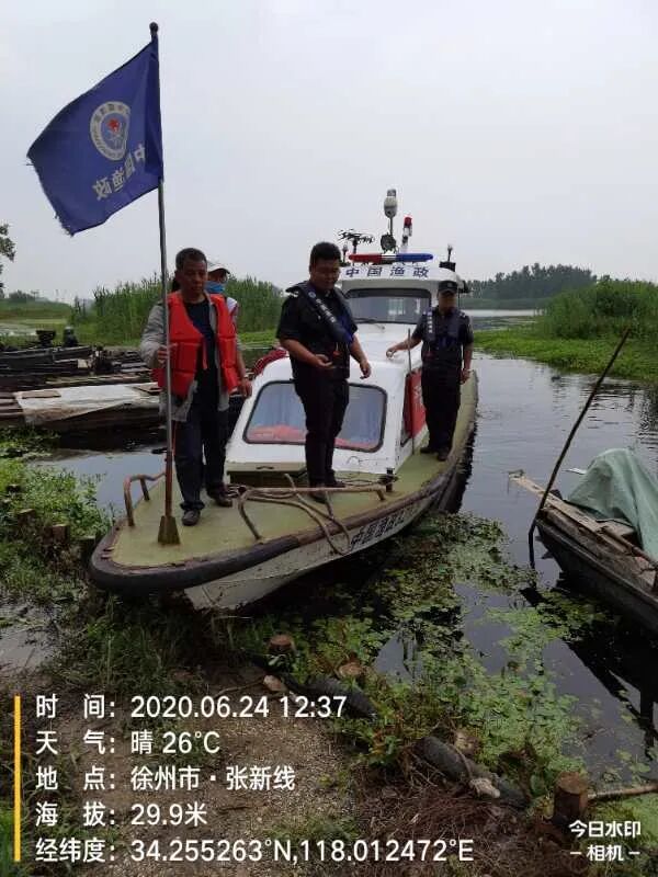 6月24日,渔政监督大队执法人员和志愿者一起来到邳州市张楼一级饮用水保护区(王杰纪念馆南)和二级饮用水保护区水域(龙化大桥东300米),对非法捕鱼船舶进行巡视调查统计。