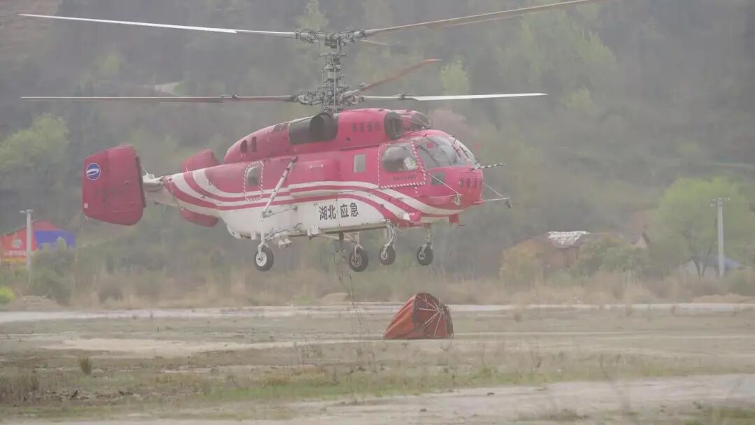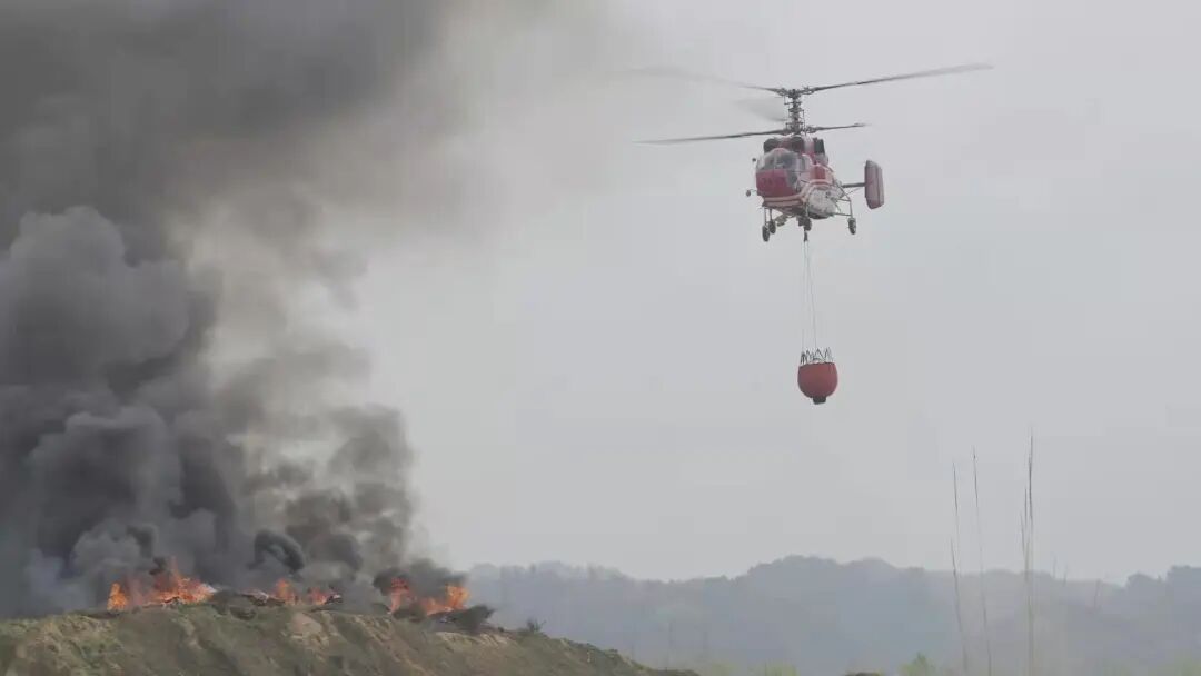 近日,武当山航空护林站出动一架K-32型直升机在武当山虎头山开展了一场紧张有序的直升机森林灭火演练。