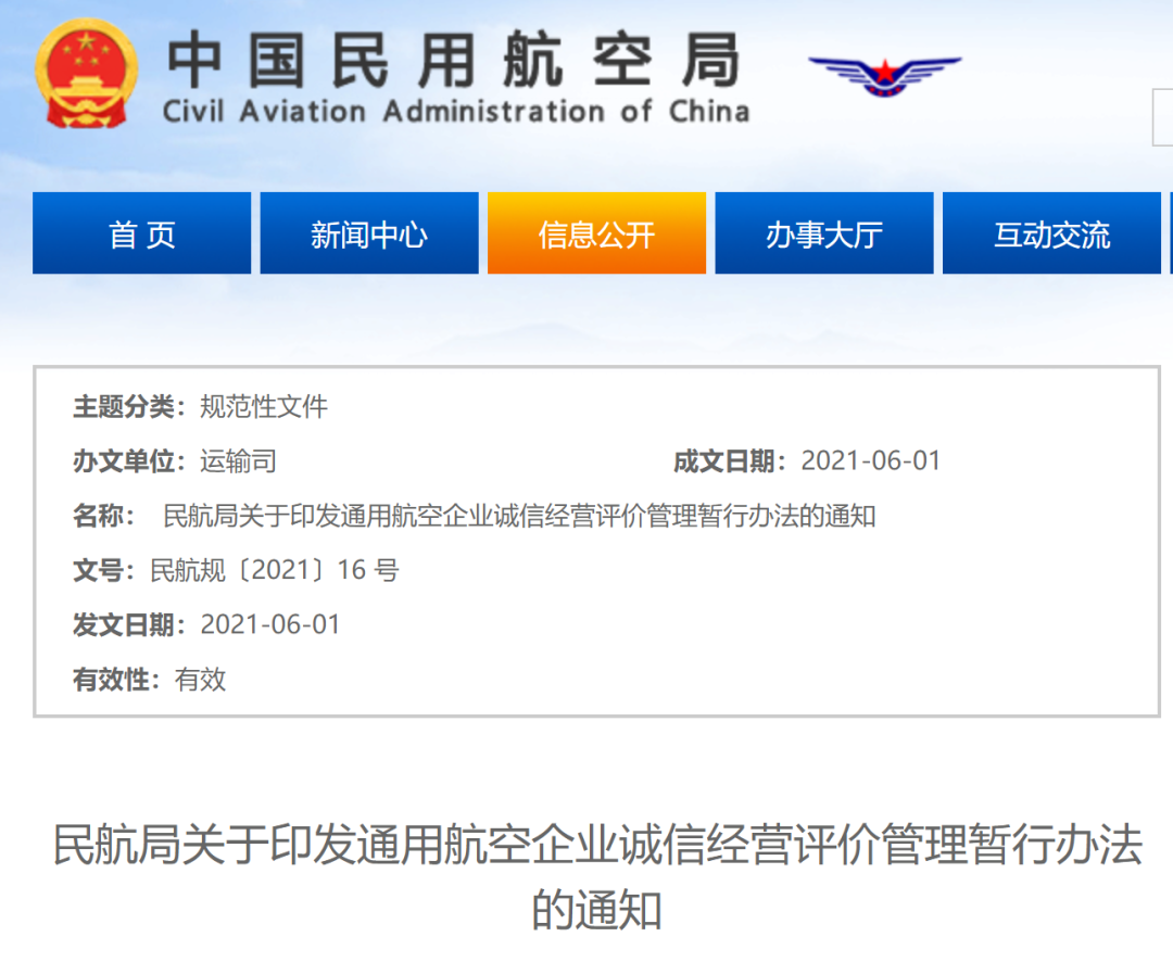 为规范通用航空企业诚信经营评价工作,促进通用航空诚信自律发展,民航局发布《通用航空企业诚信经营评价管理暂行办法》。《办法》明确了通用航空企业诚信经营评价的定义和性质、适用范围、实施主体、遵循原则、评价方法、失信惩戒、结果运用等基本概念。《办法》实施后,不仅有助于督促通用航空企业依法合规经营、通过失信惩戒手段维护市场秩序、改进民航行业监管方式,还将强化通用航空企业安全责任主体意识,保证飞行安全,提供优质服务,切实维护消费者合法权益。