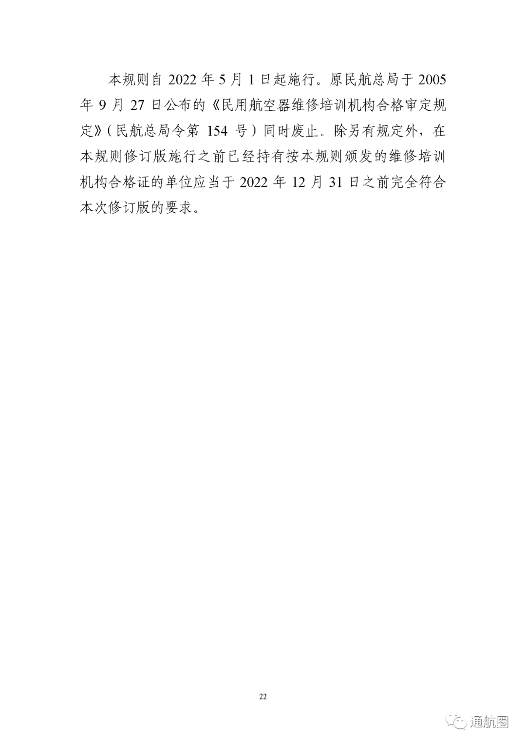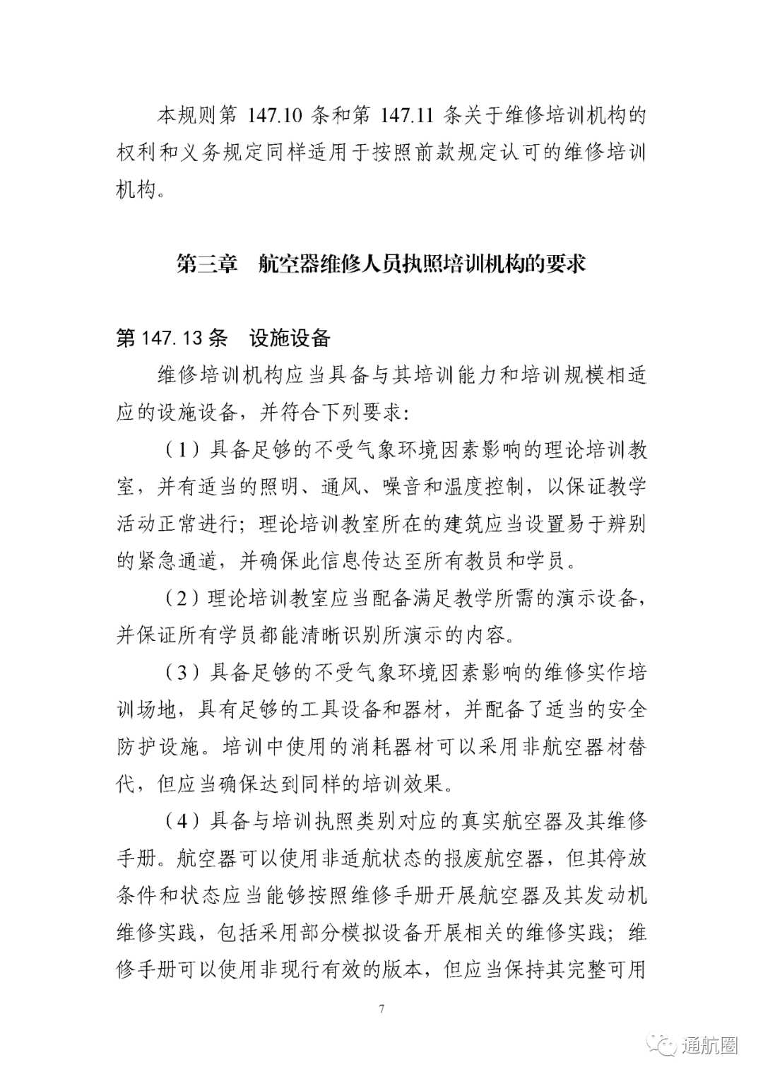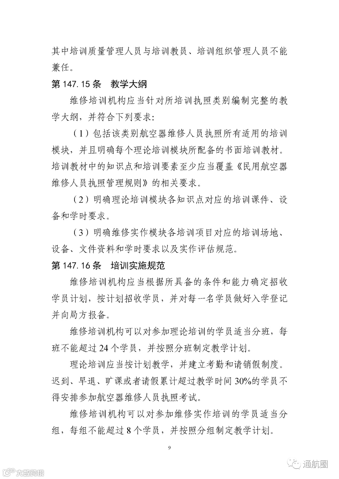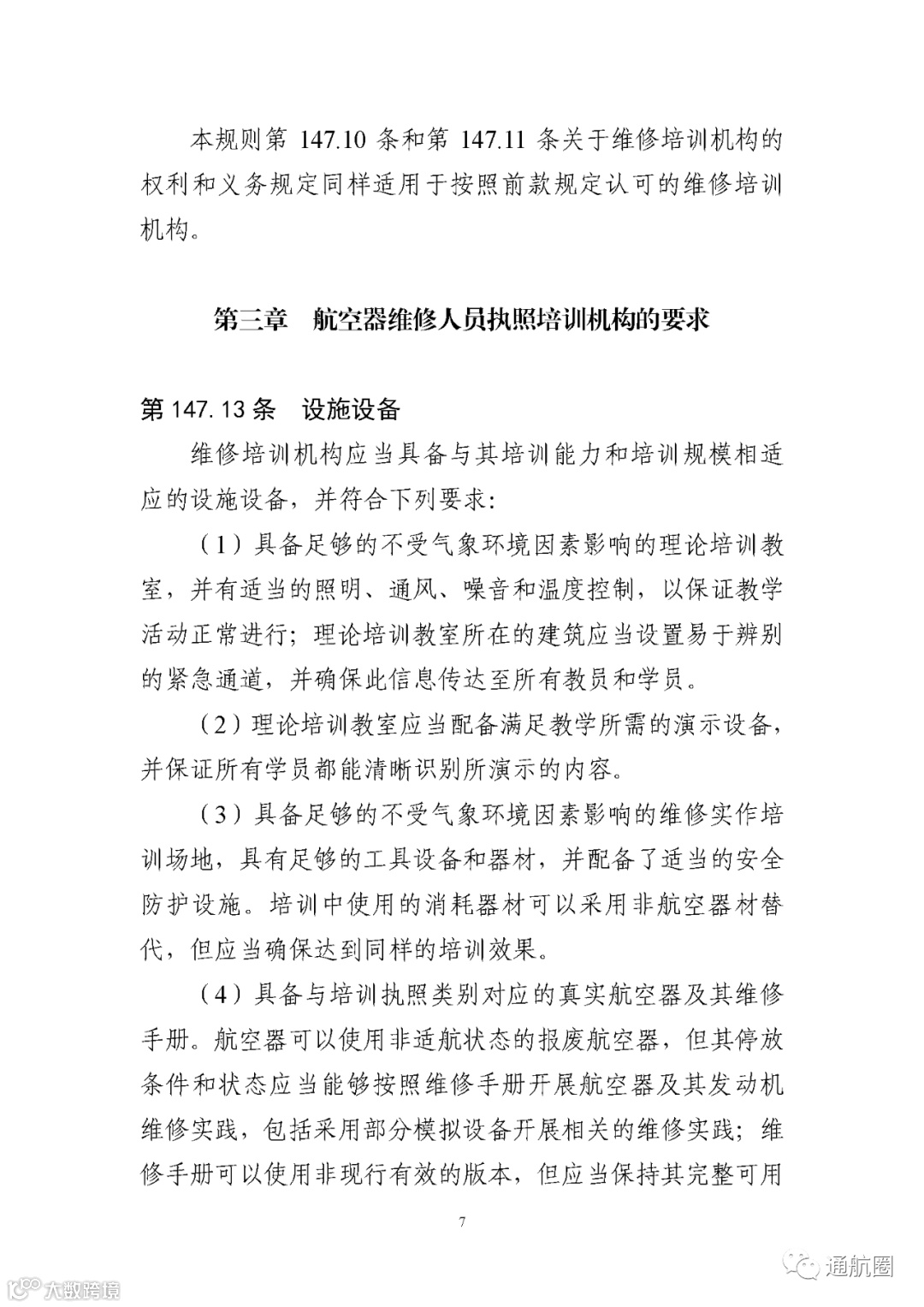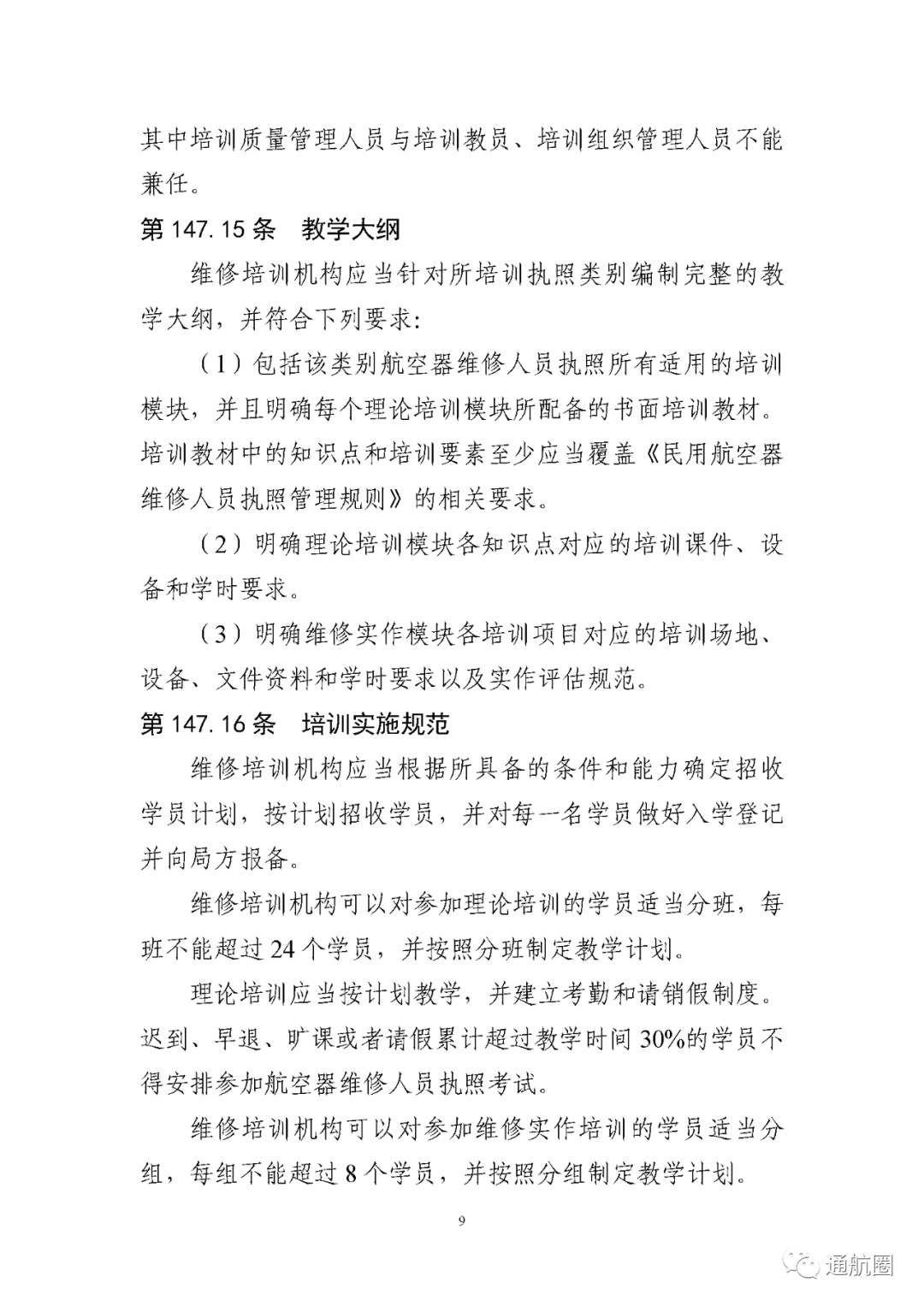 以下为新版147部《民用航空器维修培训机构合格审定规则》(中华人民共和国交通运输部令2022年第9号)的相关内容(新版145部请见今日另一篇文章):