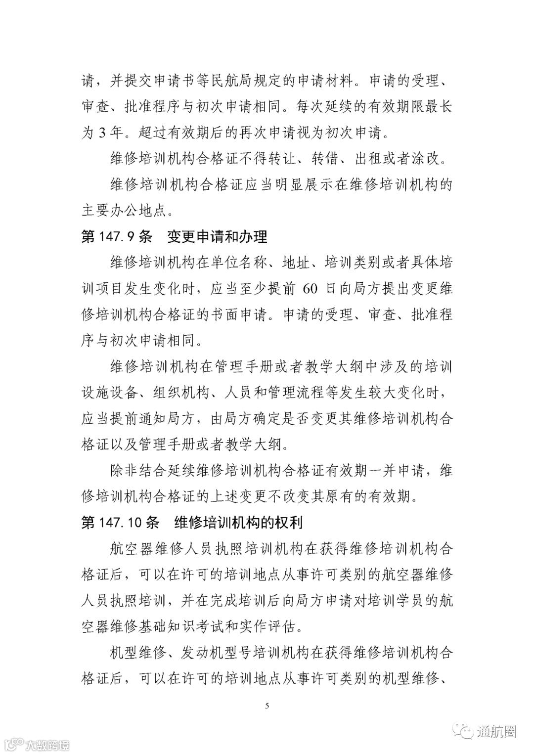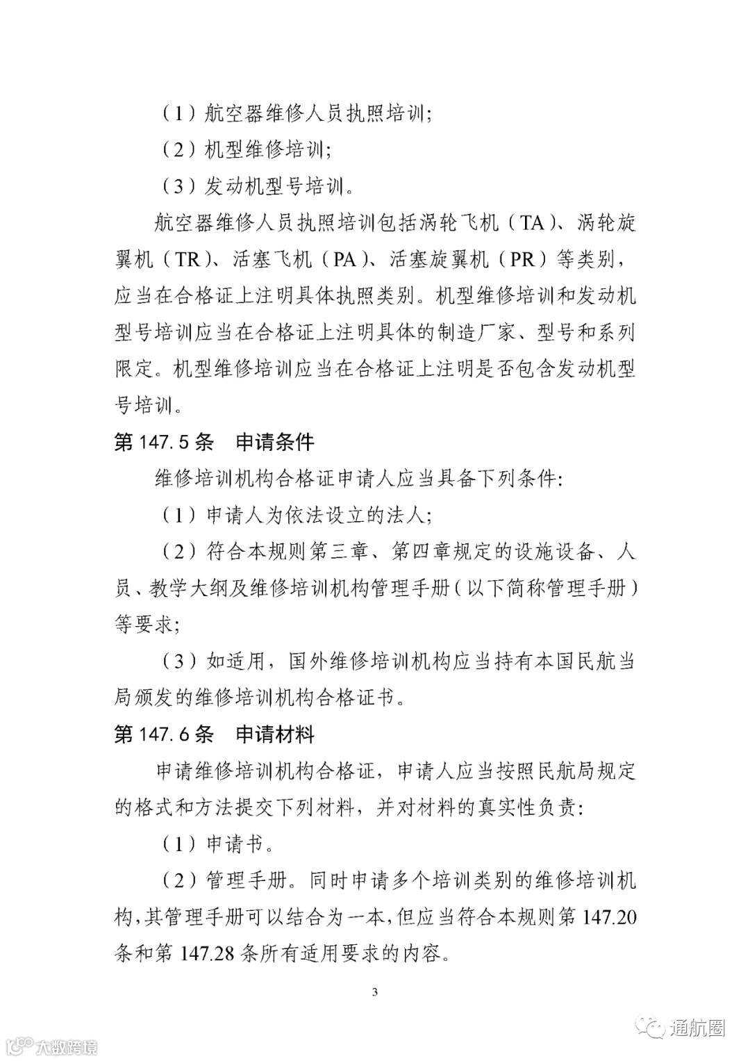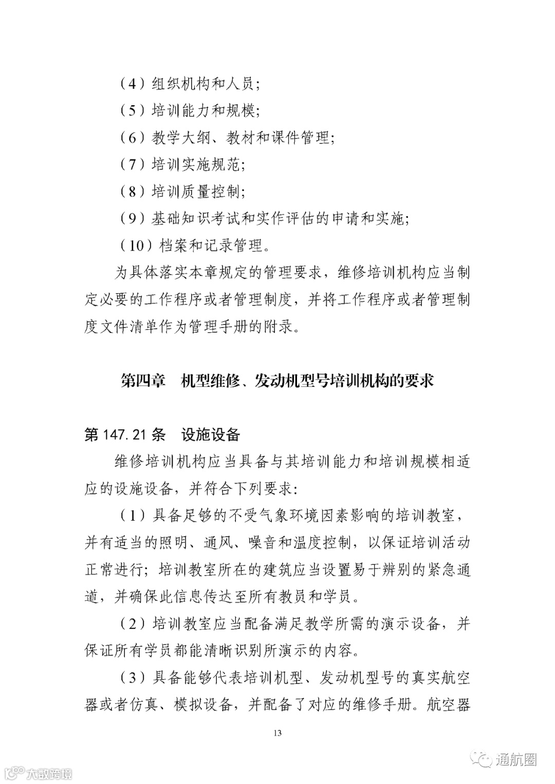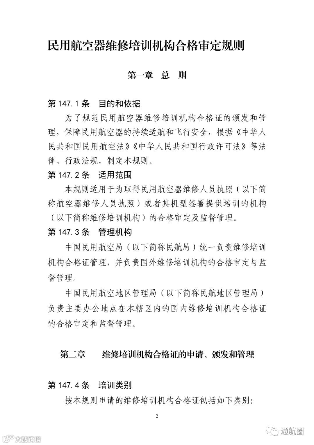 以下为新版147部《民用航空器维修培训机构合格审定规则》(中华人民共和国交通运输部令2022年第9号)的相关内容(新版145部请见今日另一篇文章):