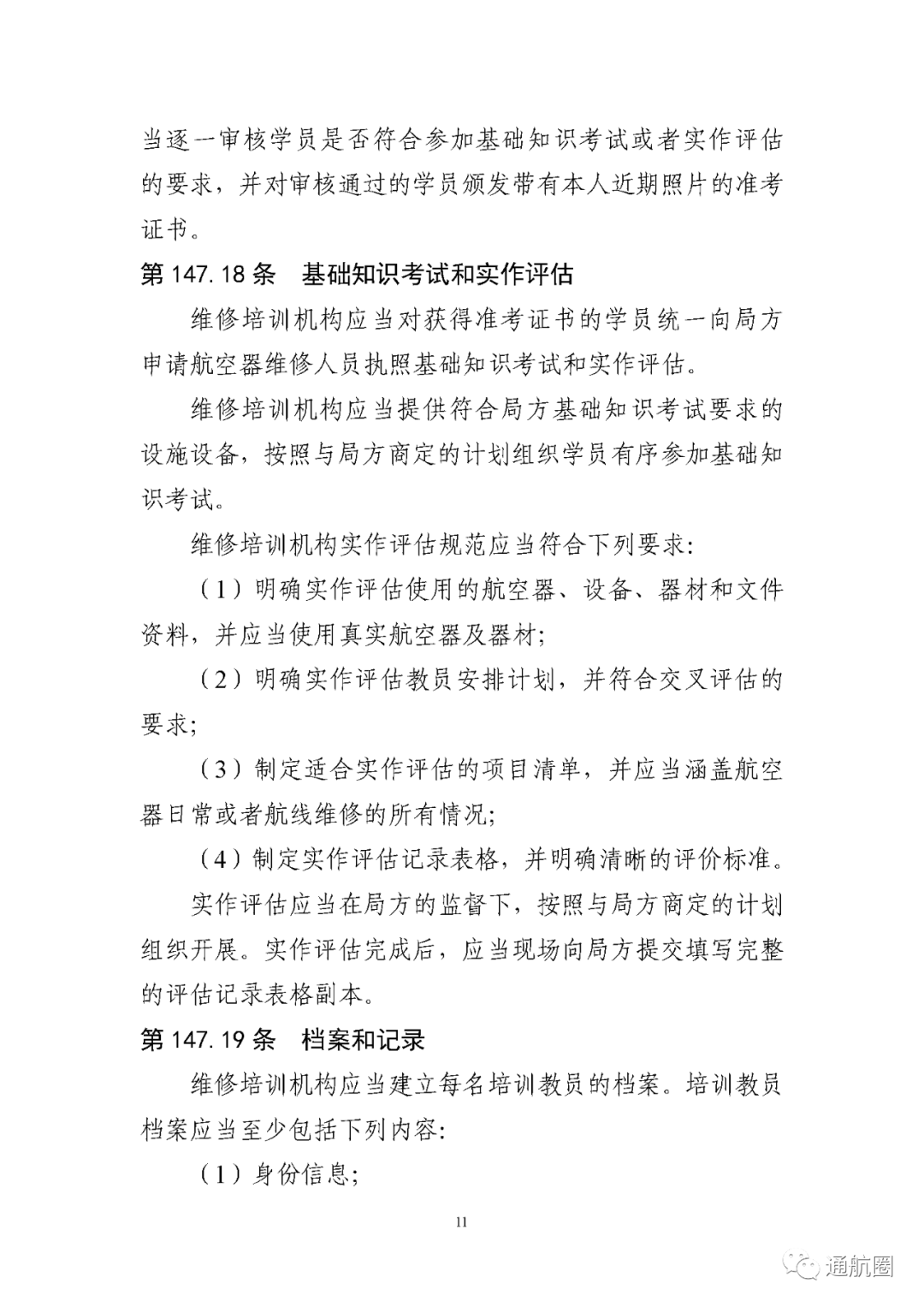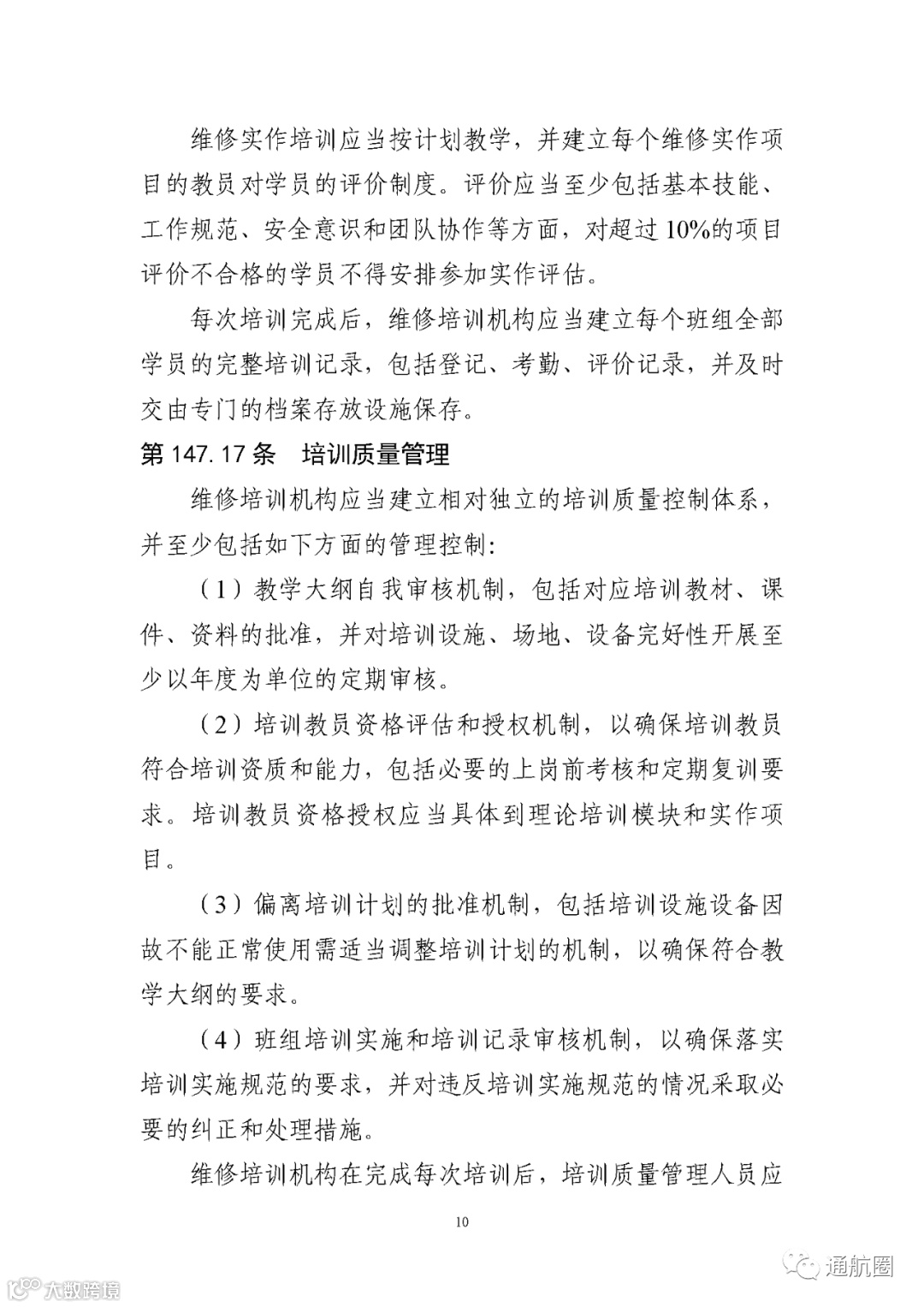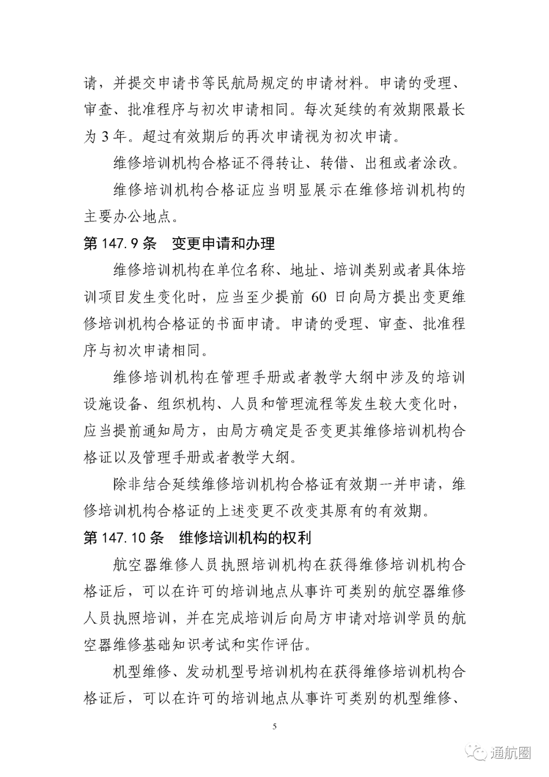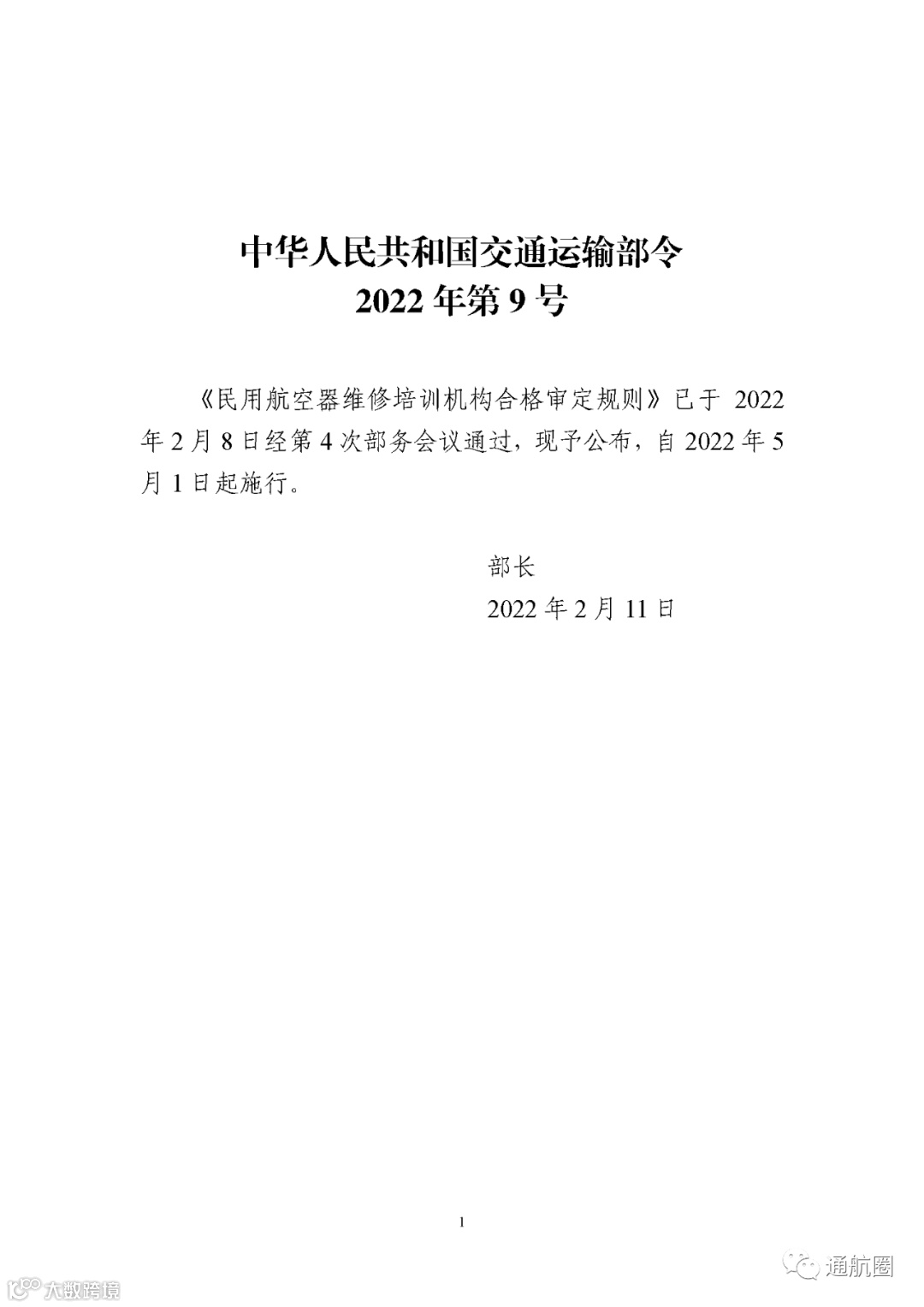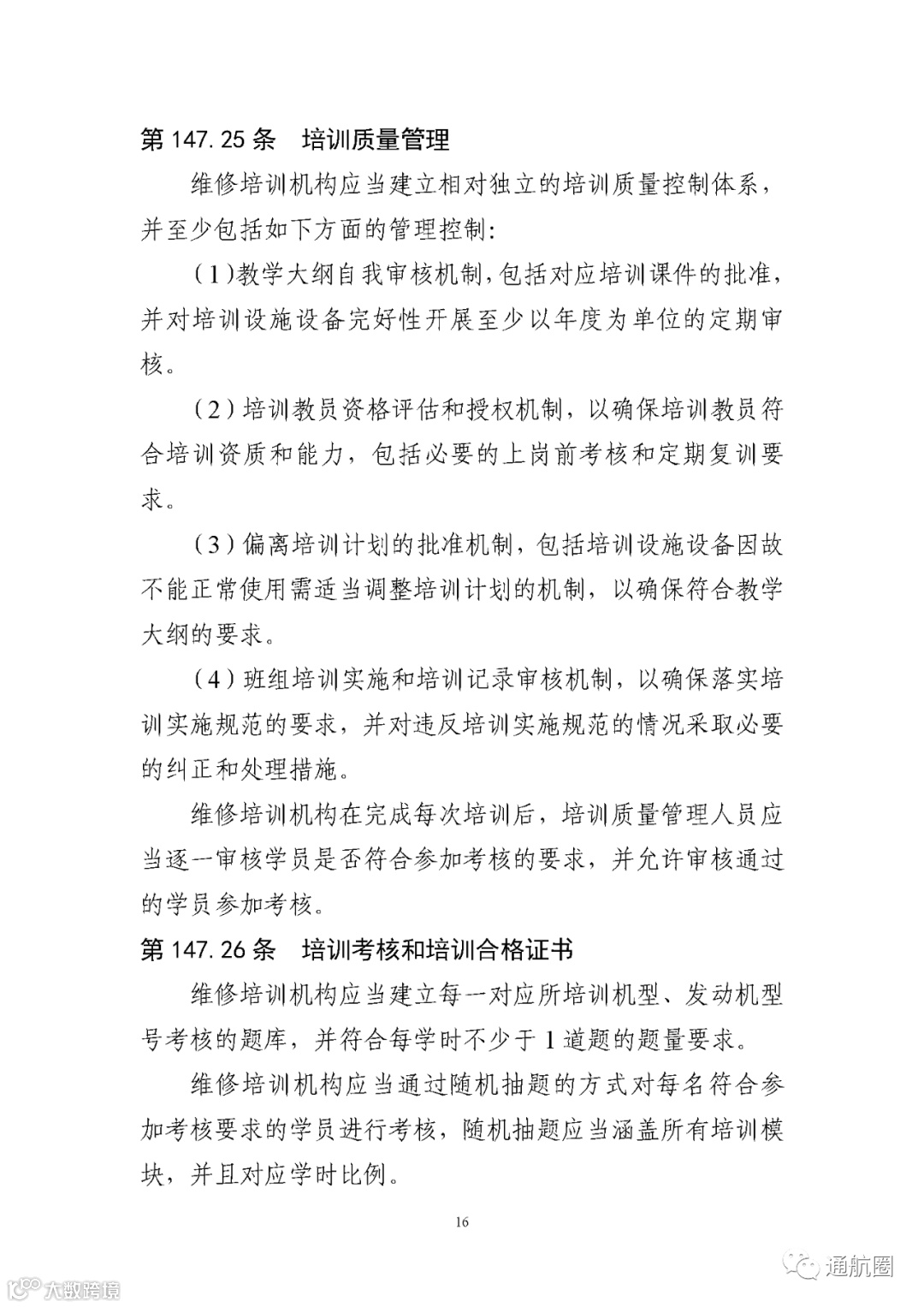 以下为新版147部《民用航空器维修培训机构合格审定规则》(中华人民共和国交通运输部令2022年第9号)的相关内容(新版145部请见今日另一篇文章):